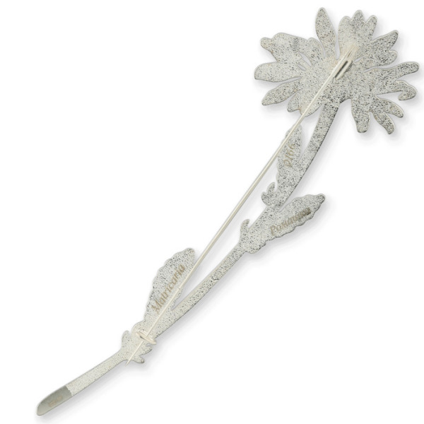 Брошь в виде изящного полевого цветка создана из серебра 925° и декорирована высококачественными эмалями. В разработке дизайна участвовала преподаватель по этикету Татьяна Полякова.