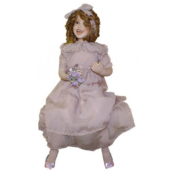 Коллекционная фарфоровая кукла «Шарлотта» — трогательный образ детства, наполненного светом, наивной радостью и беззаботным смехом. Скульптурно выразительное лицо с открытой улыбкой, слегка прищуренные глаза и живой поворот головы передают момент искреннего счастья — тот самый, который возникает в солнечное утро перед праздником или во время весенней игры в саду. Локоны каштановых волос аккуратно уложены, а большой бант придаёт образу кокетливую завершённость.