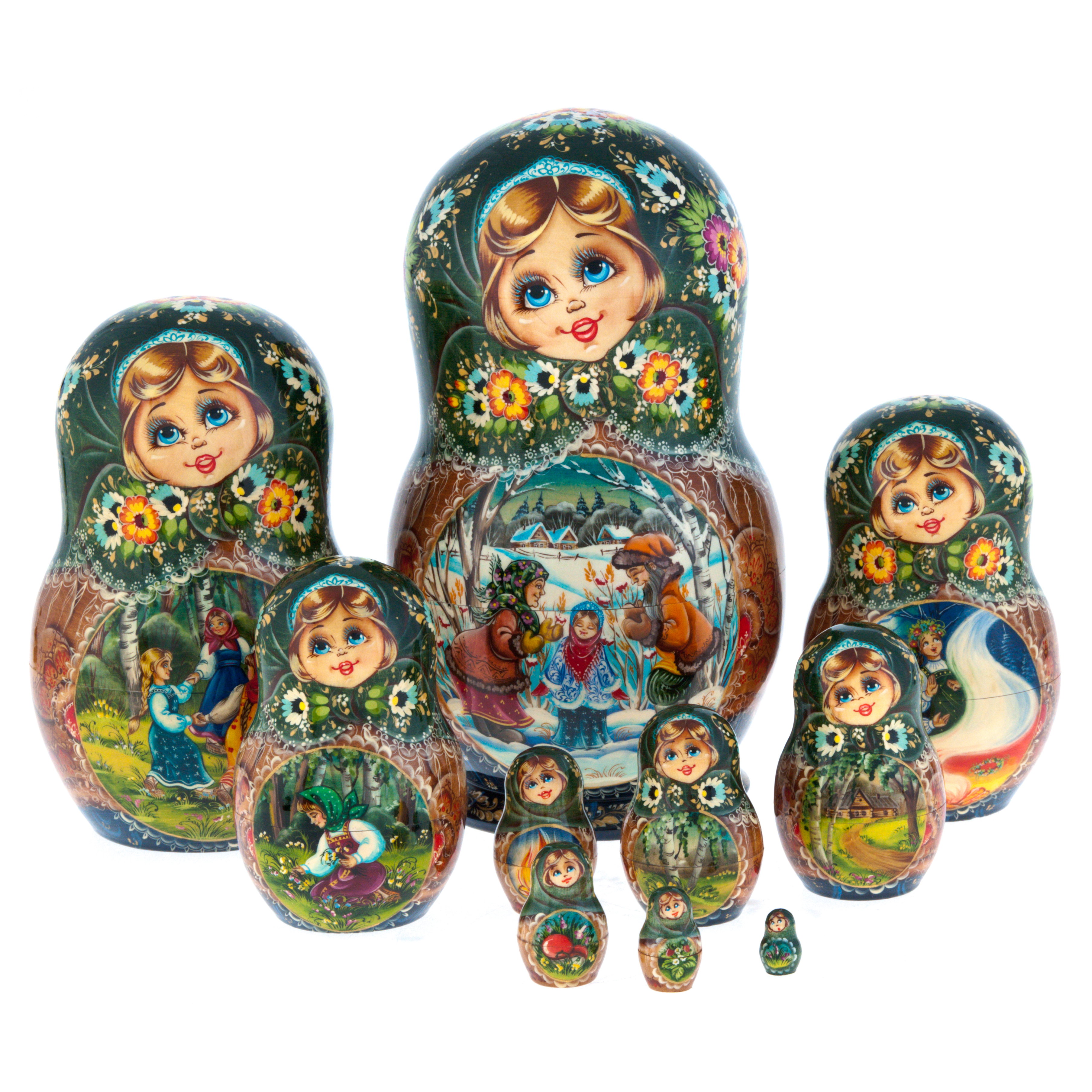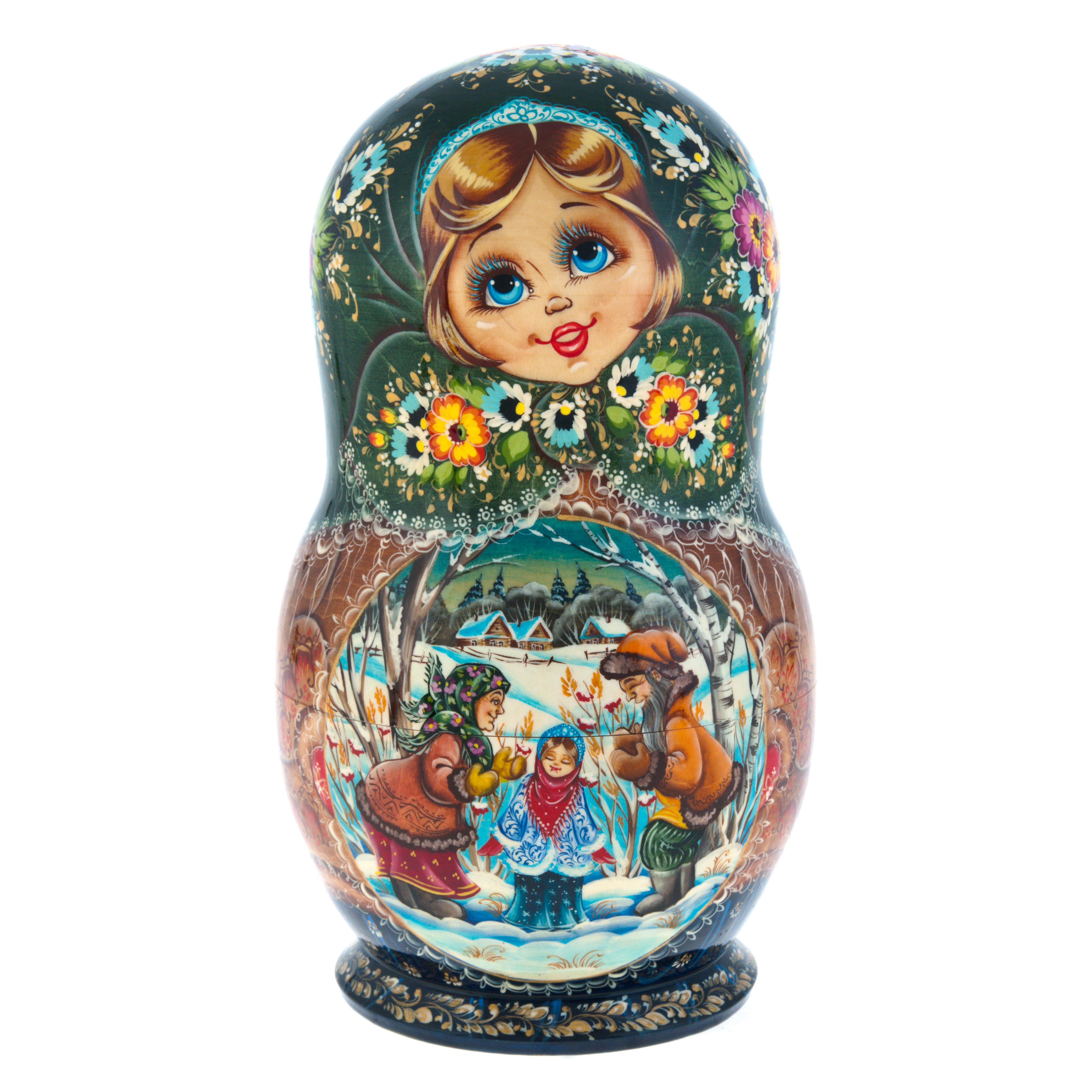 Матрешка на 10 мест "Зимняя деревня" 25 см