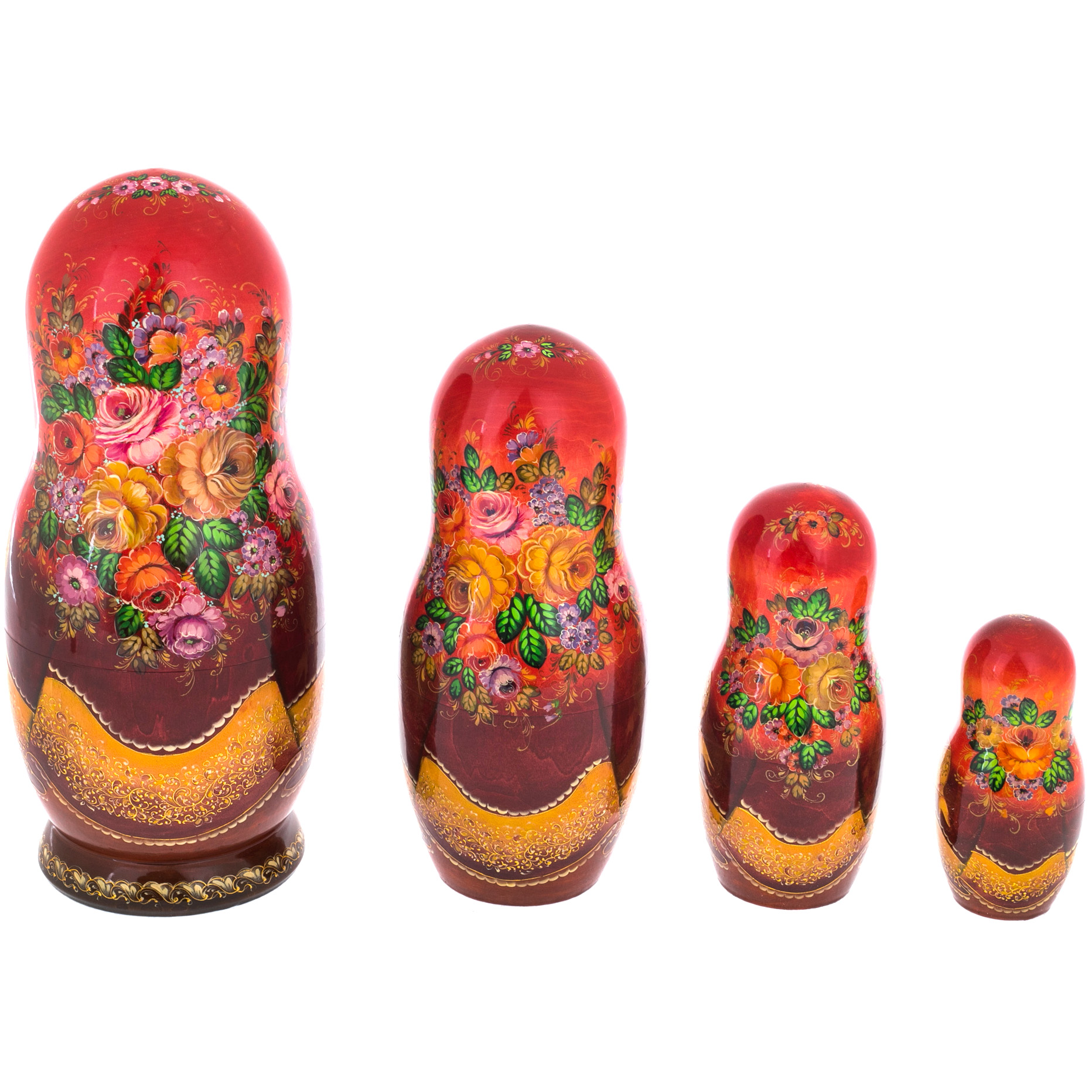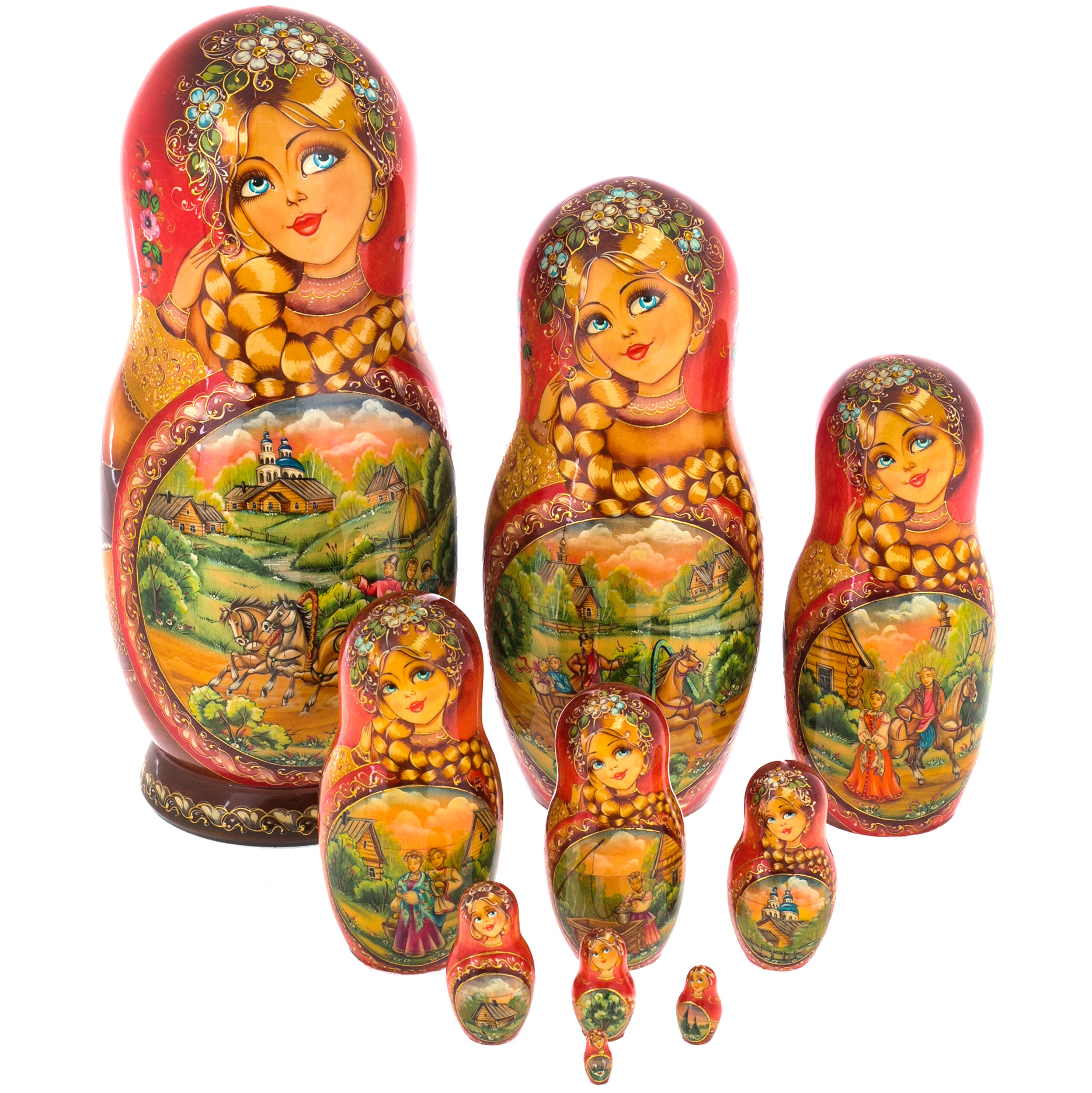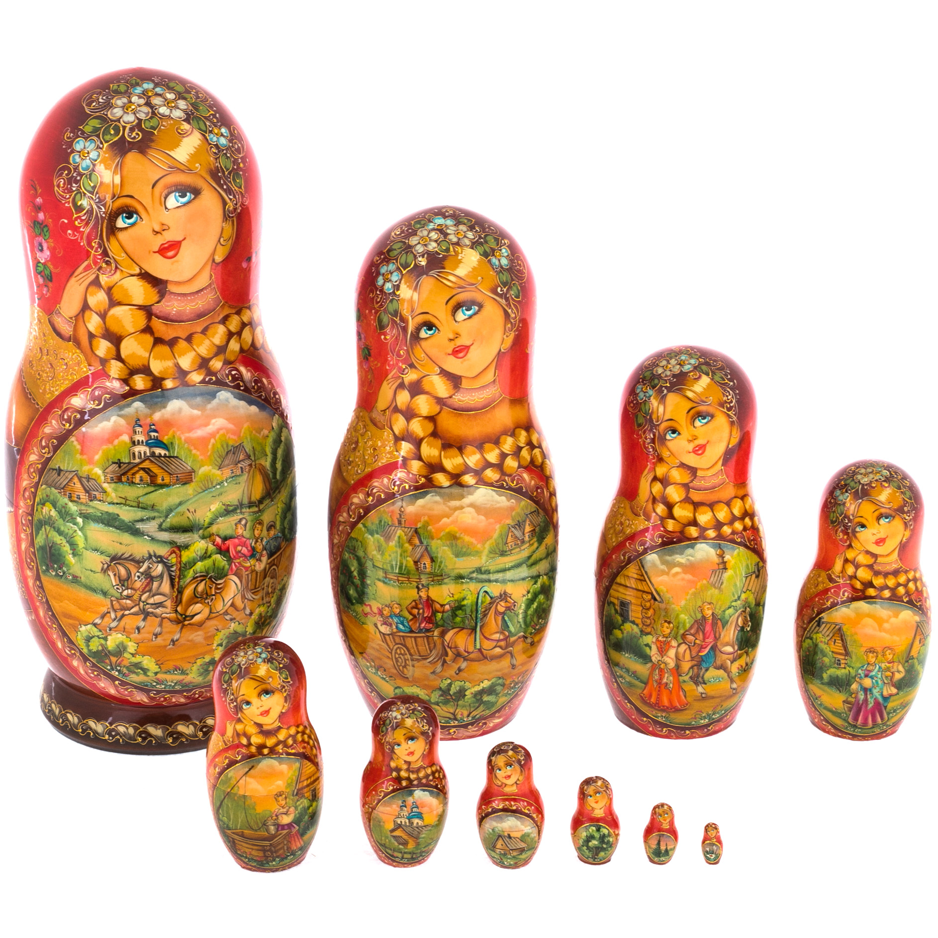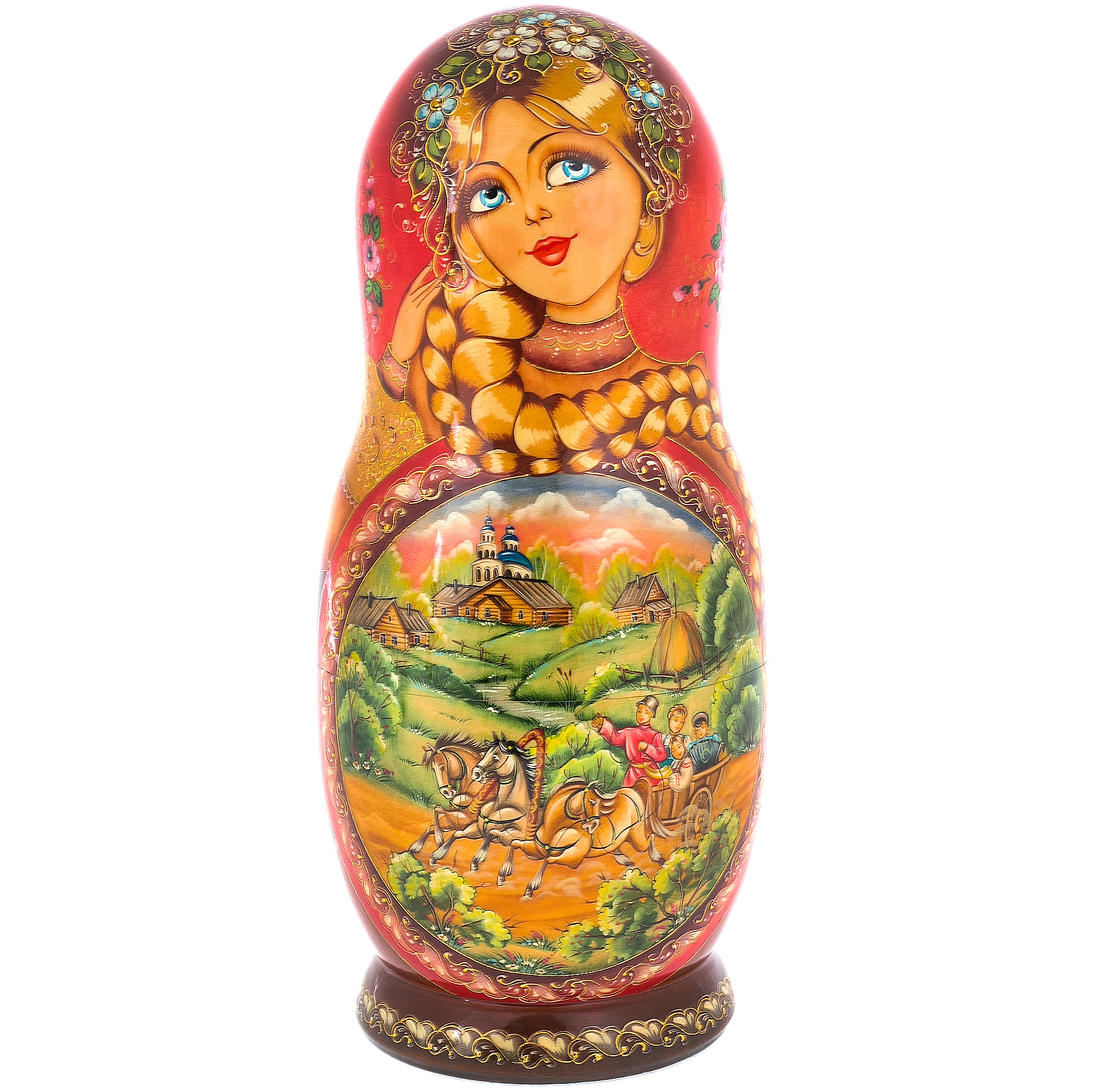 Матрешка на 10 мест "Летняя тройка. Красный платок" 33.5 см