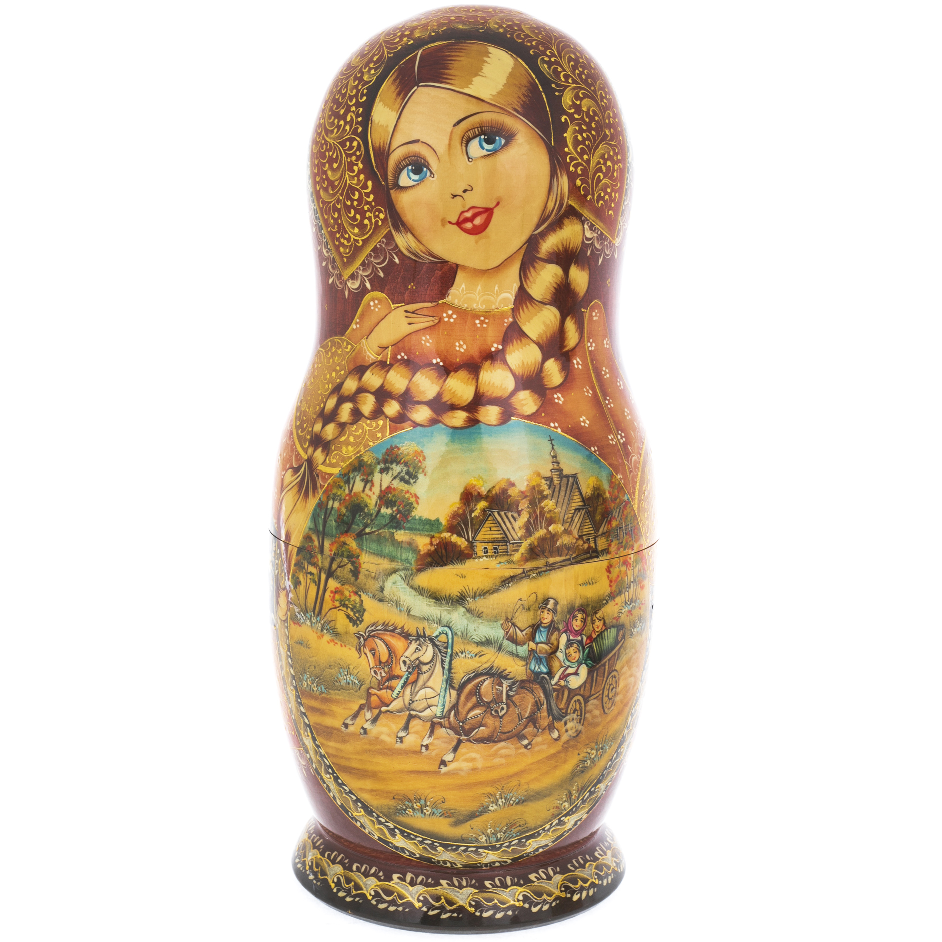Матрёшка на 15 мест "Родные просторы" 33 смМатрёшка на 15 мест "Родные просторы" 33 смДеревянная матрешка – народная игрушка, символизирующая исконно русскую культуру, превратилась в традиционный русский сувенир, который любят иностранные туристы. Матрешку можно назвать и символом России, как дымковскую игрушку, уральскую бересту, жостовские подносы или другие самобытные сувениры. Стильные сувенирные матрешки, с любовью расписанные русскими мастерами в традиционном стиле, станут прекрасным подарком для иностранных партнеров и разборчивых коллекционеров.