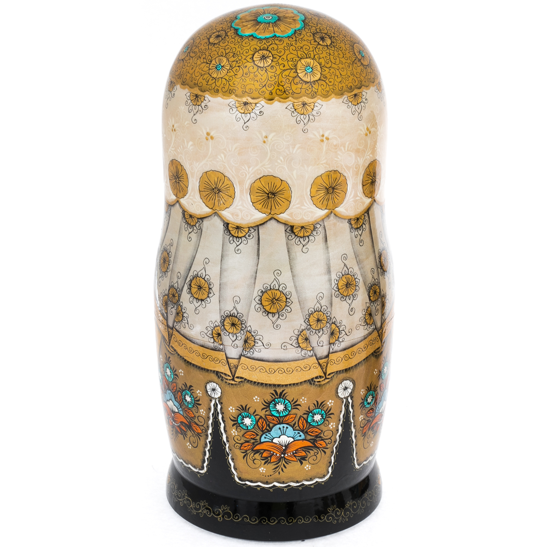 В традиционном искусстве росписи каждая матрёшка рассказывает свою историю. В ней можно увидеть и сцены деревенской жизни, и сказочных героев, и символику плодородия и богатства. Например, яркие цветочные узоры на матрёшках означают процветание, красоту и радость, которые передаются из поколения в поколение. А золотые и красные элементы — это символы солнца, тепла и вечного круговорота жизни.