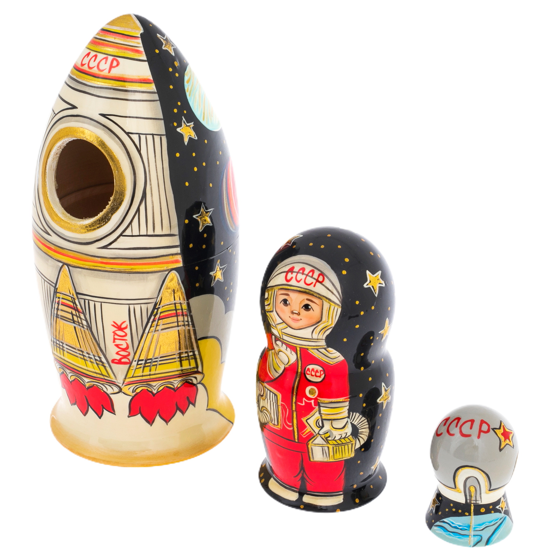 Матрешка "Ракета" — это символ эпохи, воплощенный в утончённой форме традиционного русского искусства. Она объединяет в себе дух первооткрывателей космоса, технологический прогресс и гордость за великие достижения человечества. Этот уникальный предмет не просто рассказывает историю, он переносит в мир бесконечного пространства, где границы исчезают перед величием звезд и планет.