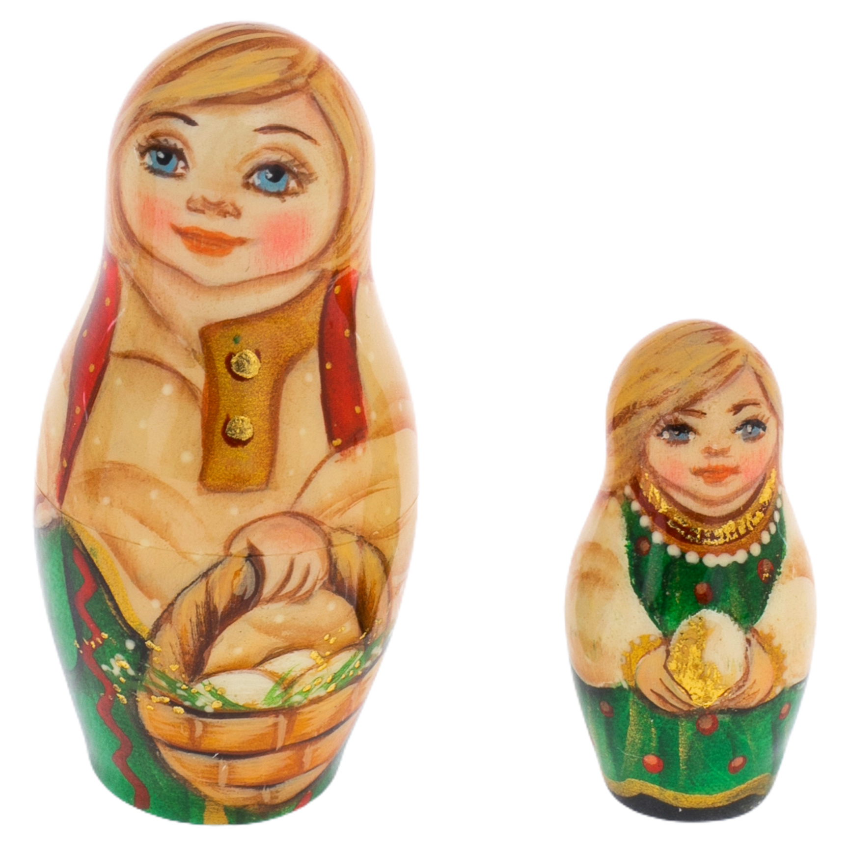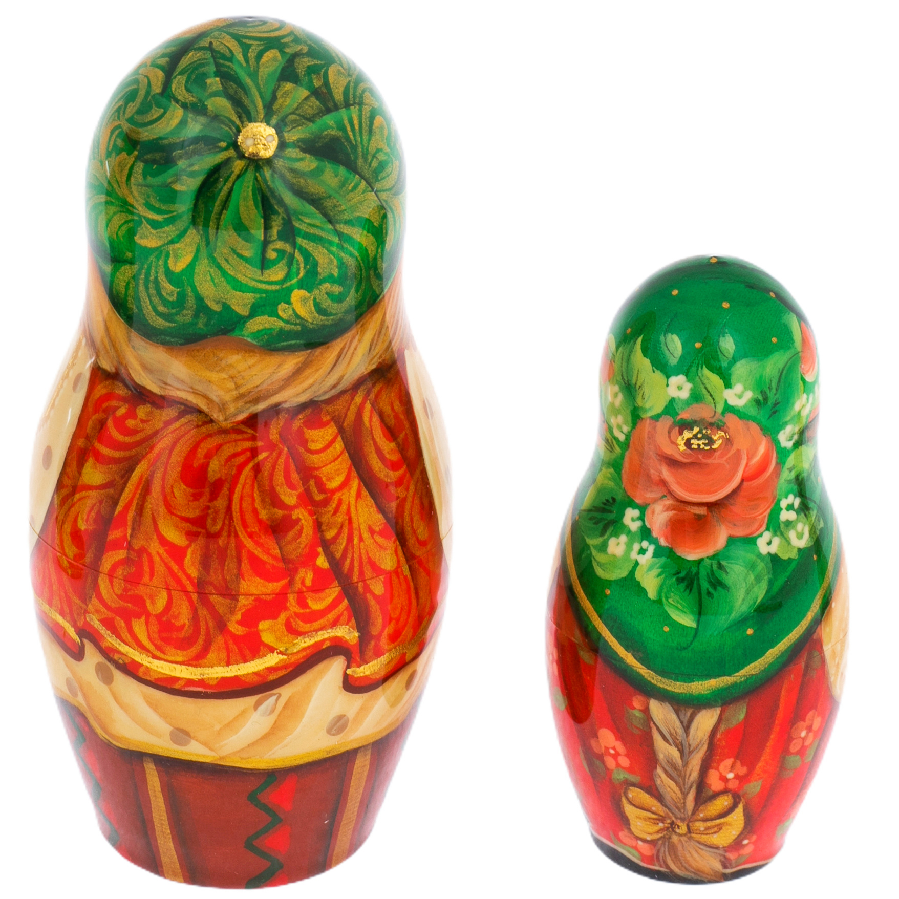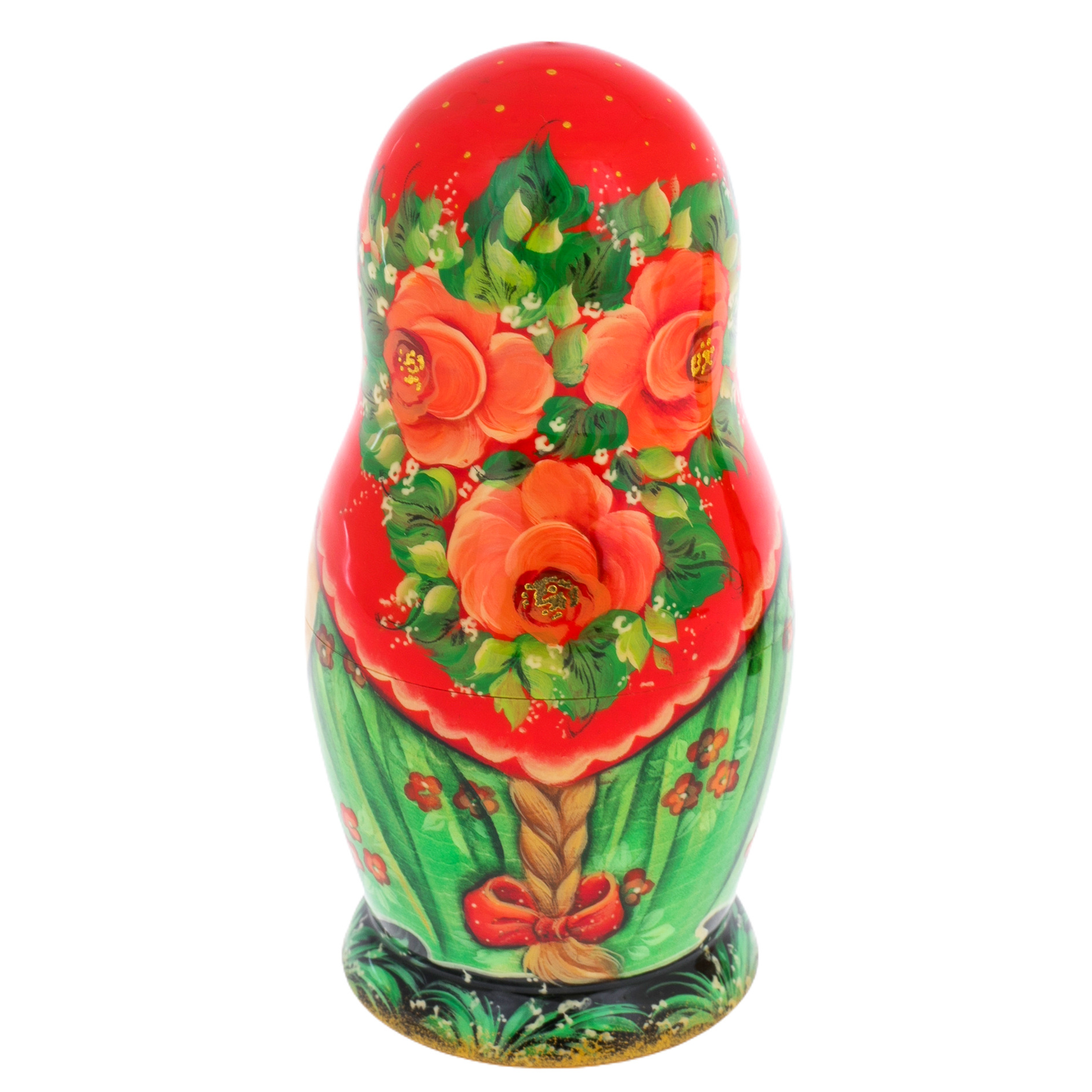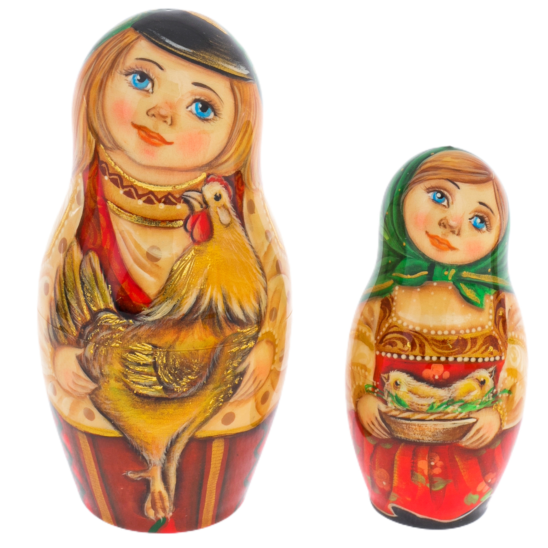Матрешка на 5 мест "Девочка с петухом в красном платке" 15 см