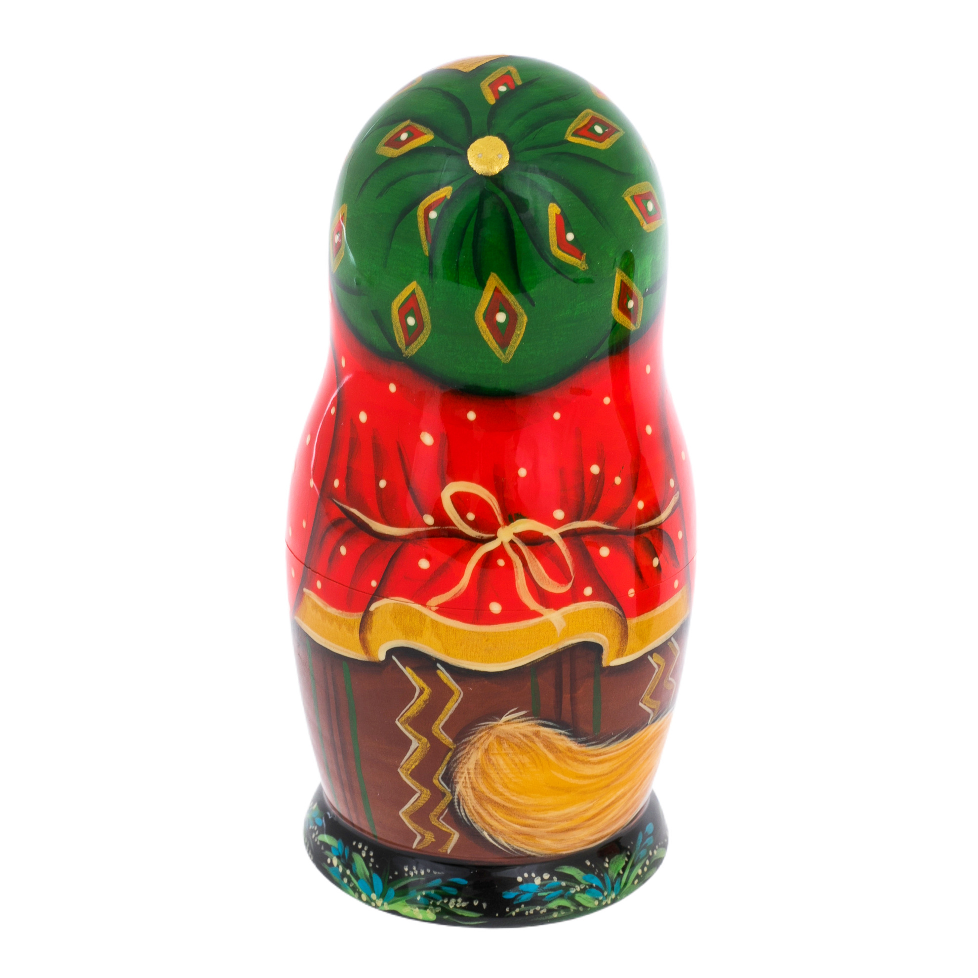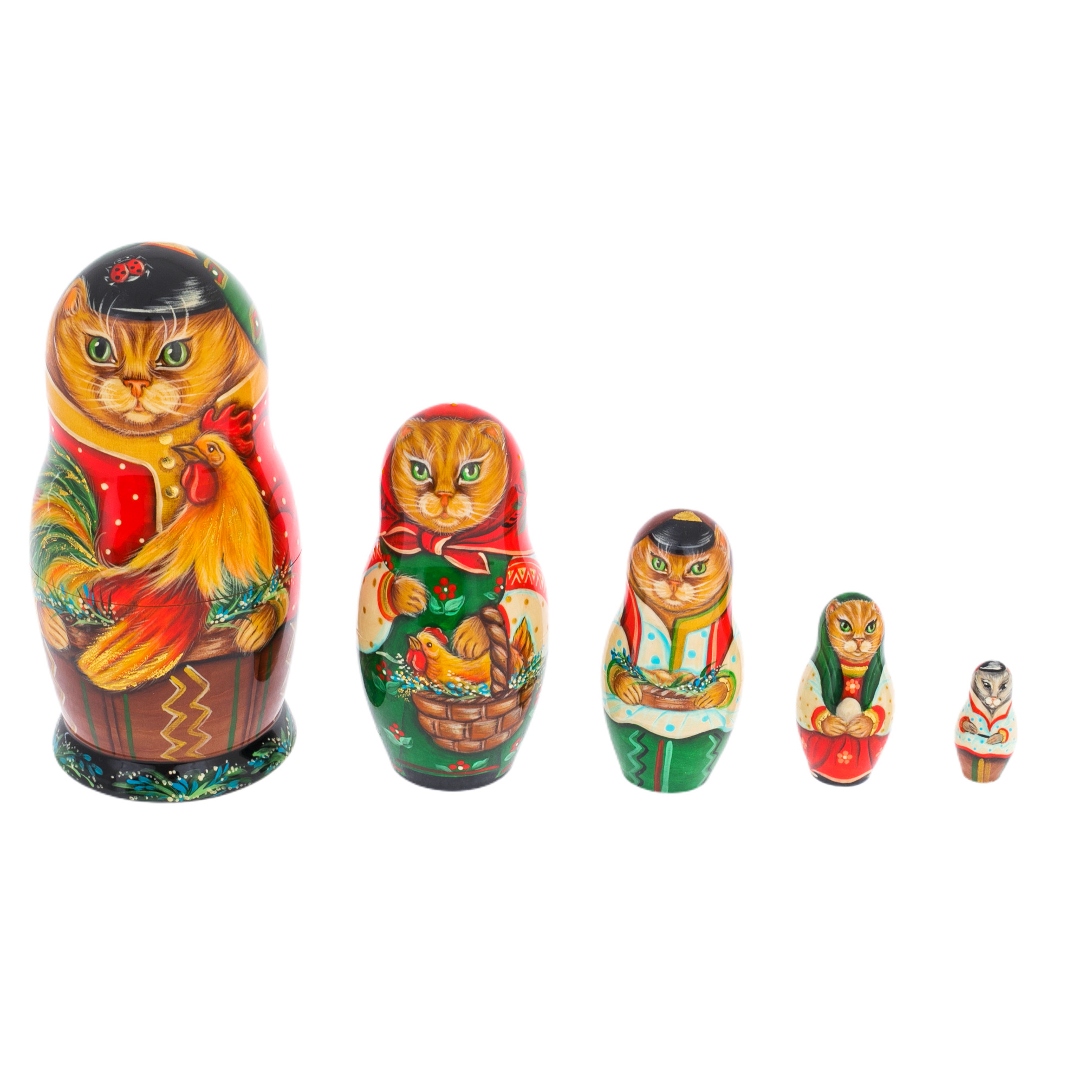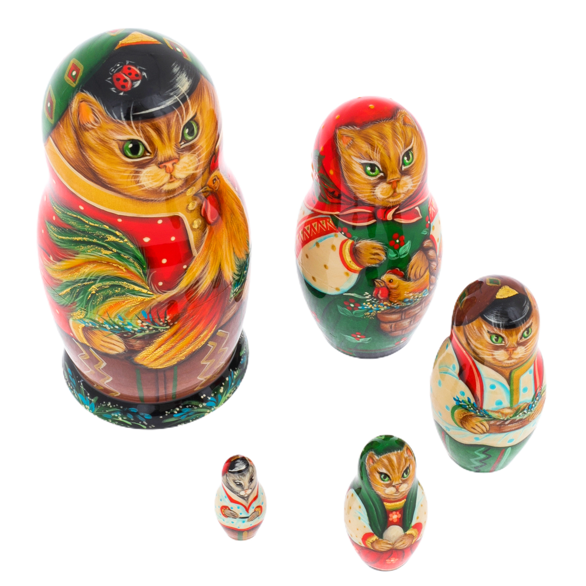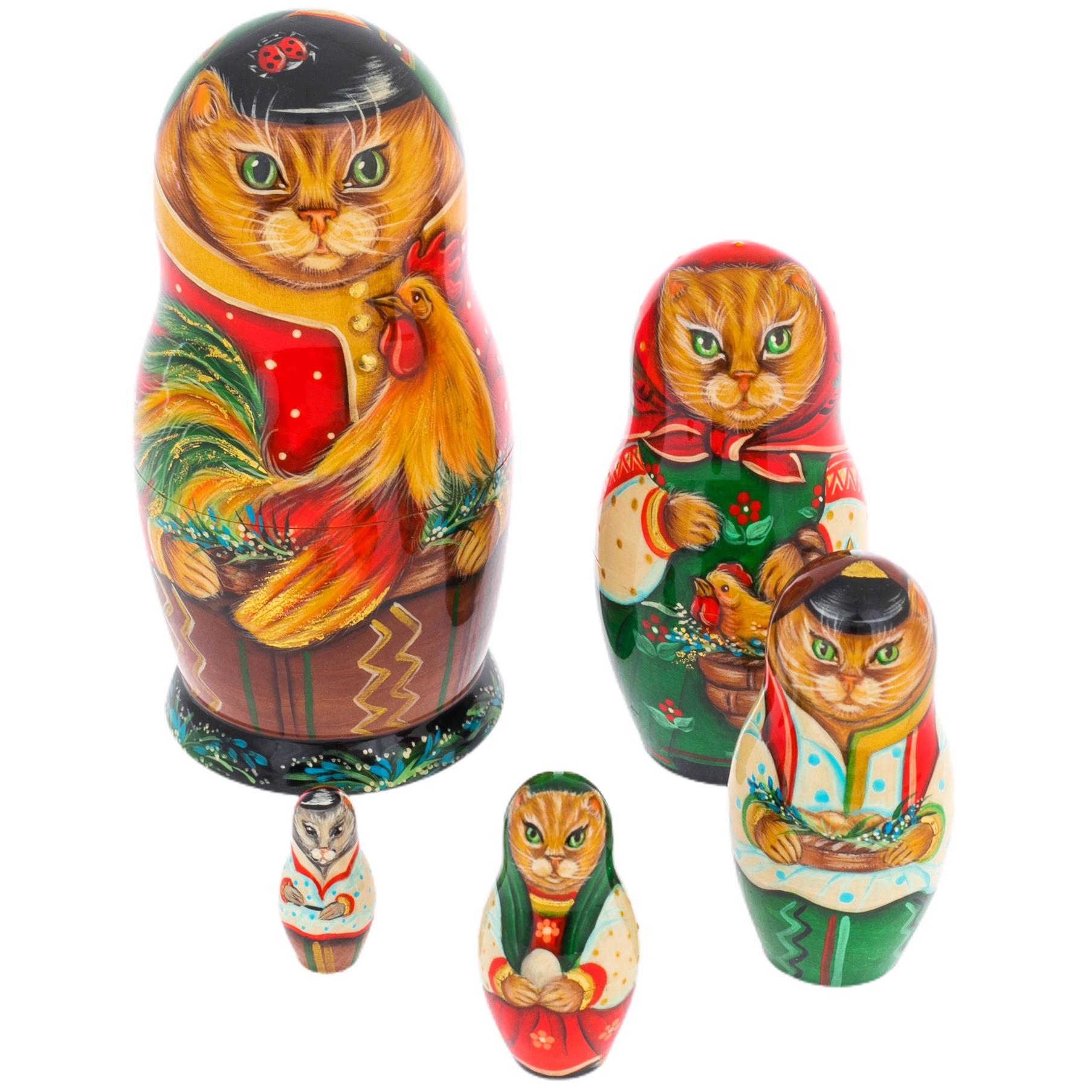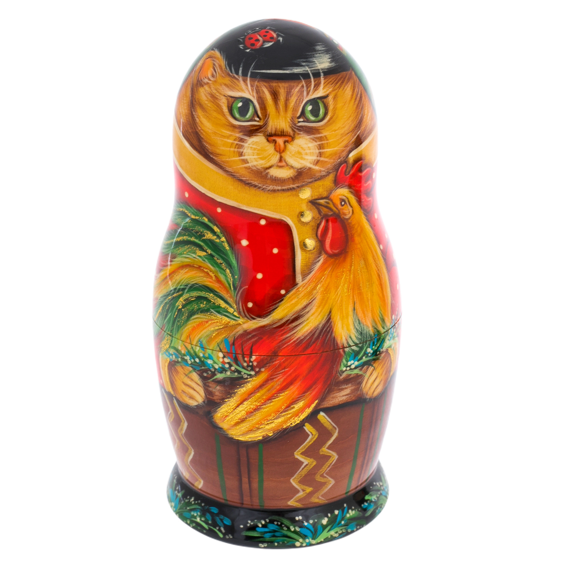 Матрешка на 5 мест "Кот с петухом" 15 см
