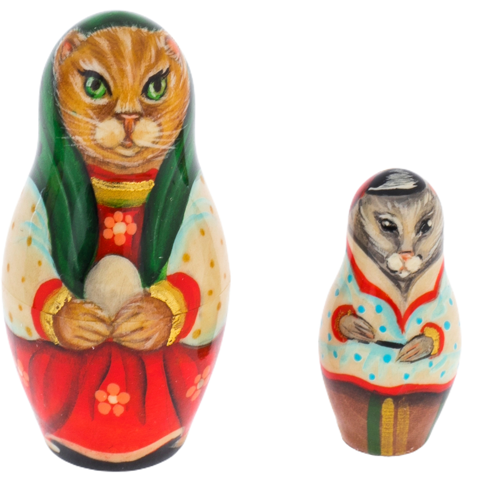 Великолепная матрёшка "Кот с петухом" — это воплощение искусства, каждая деталь которого наполняет душу теплом русской традиции и уникальной индивидуальностью. Пять миниатюрных фигур, скрывающихся одна в другой, переносят в мир гармонии и кропотливого мастерства, создавая целую галерею образов, рассказывающих свою историю.