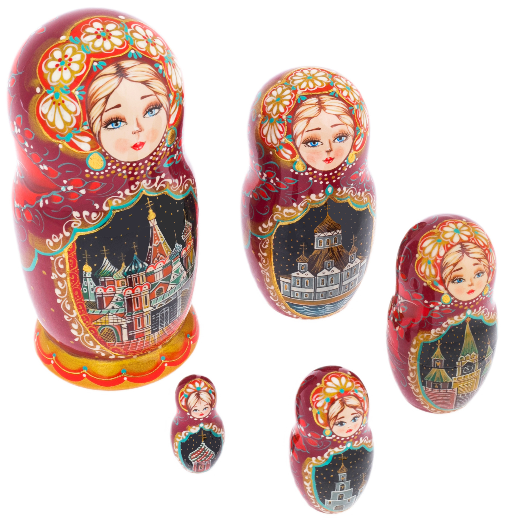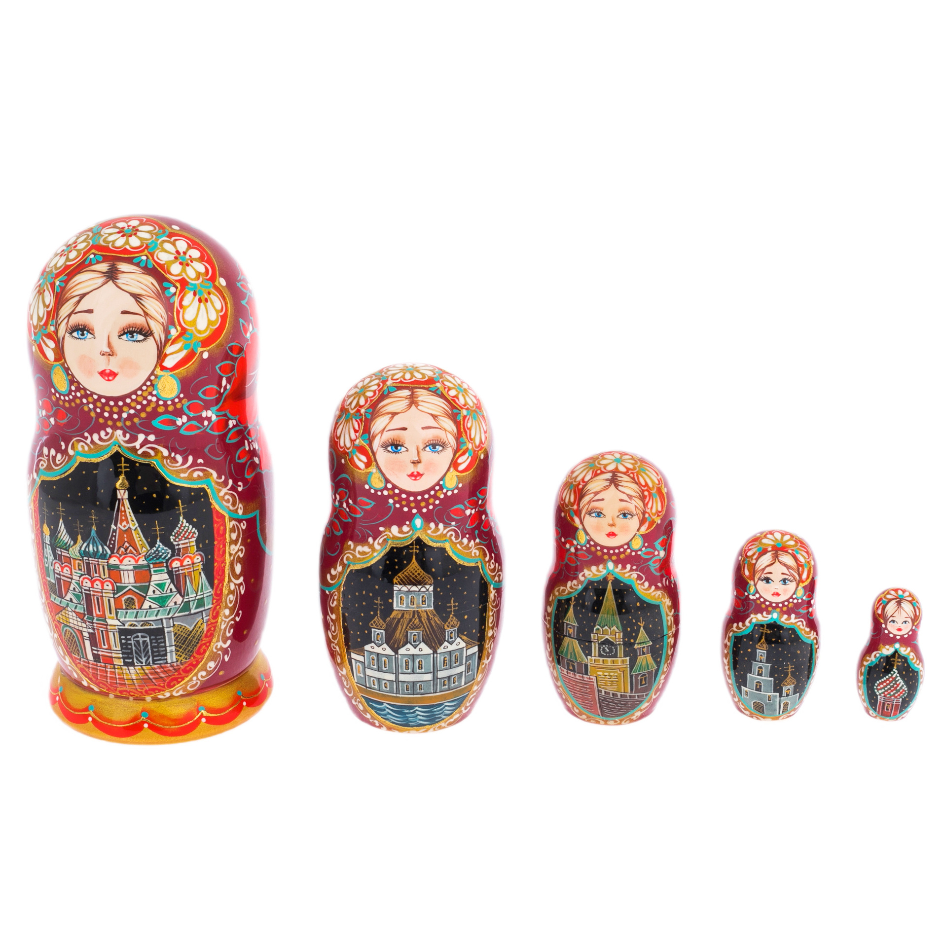 Матрешка на 5 мест "Ночная Москва" 18 см
