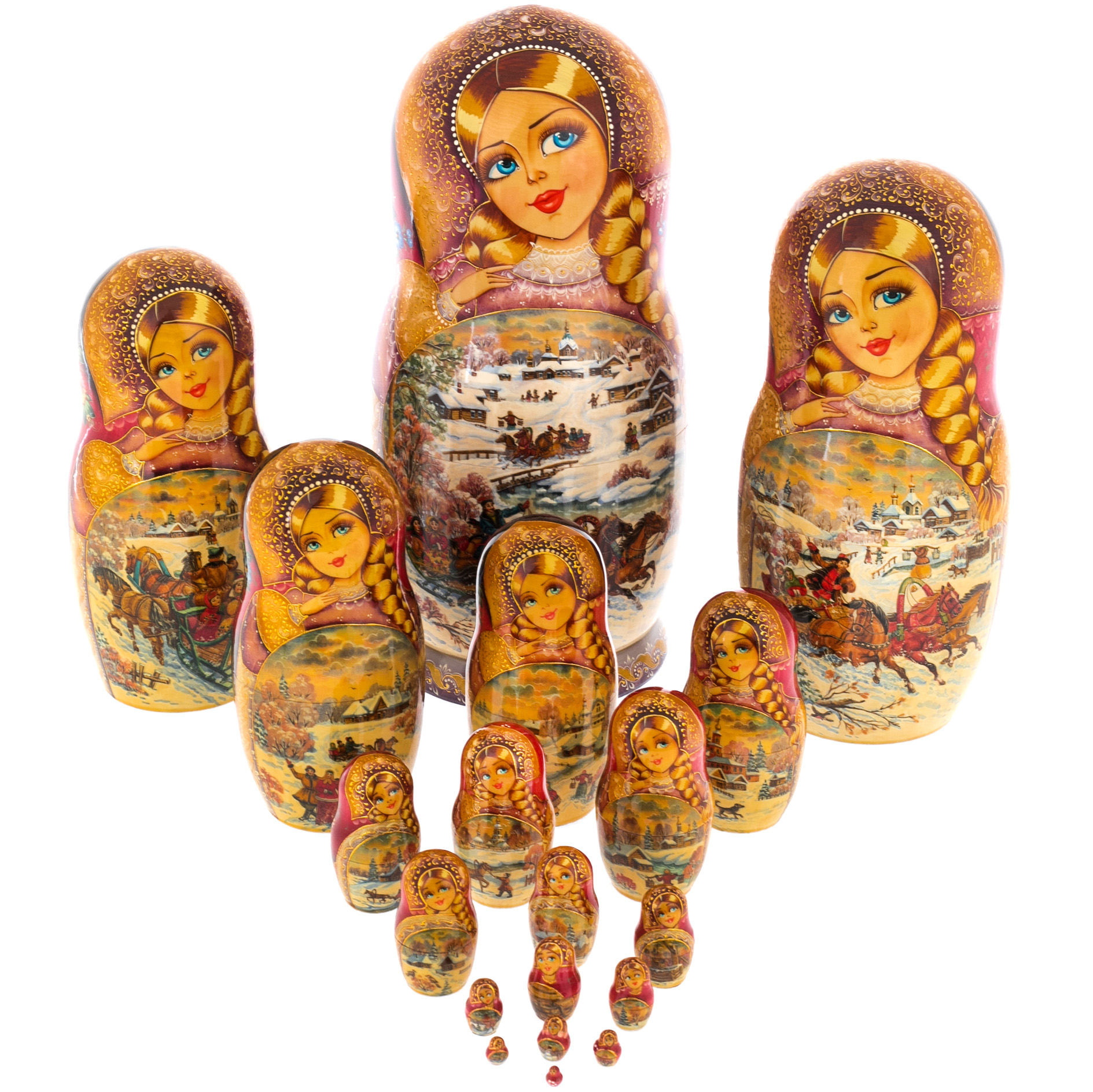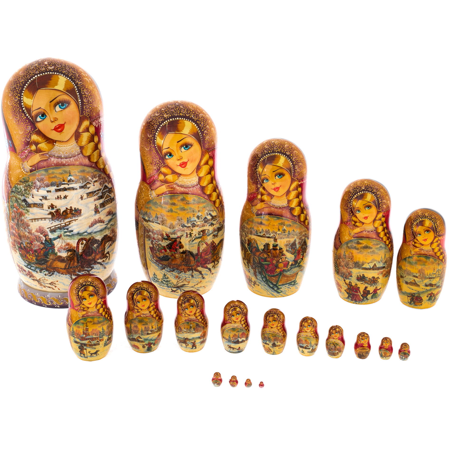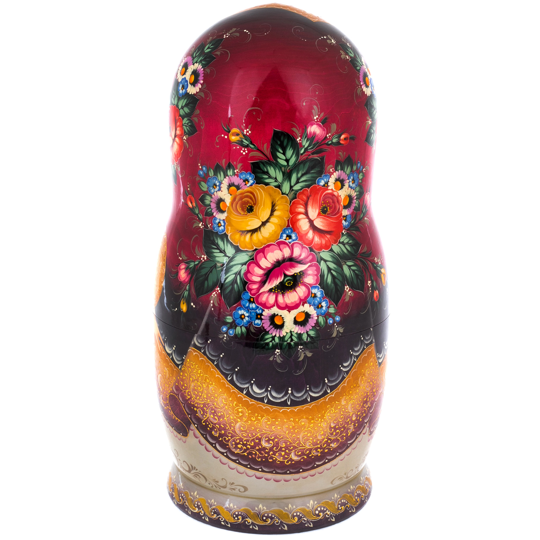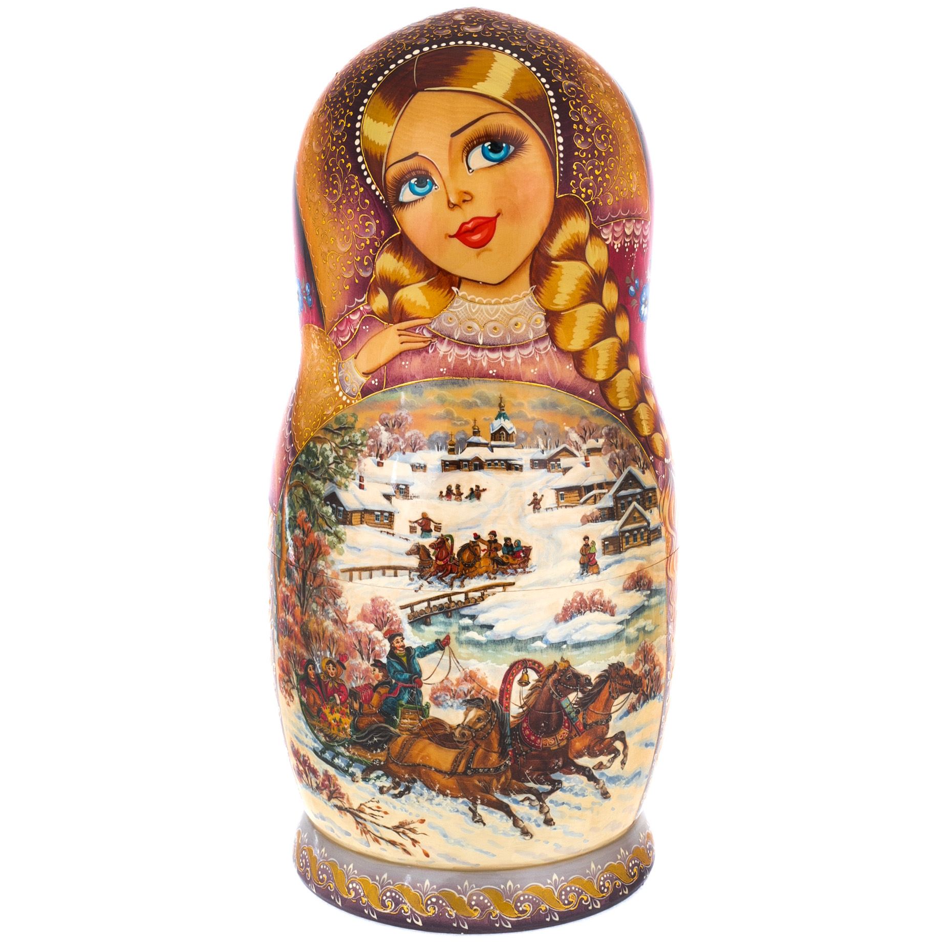 Матрешка на 20 мест "Зимняя тройка. Бордовый платок" 35 см