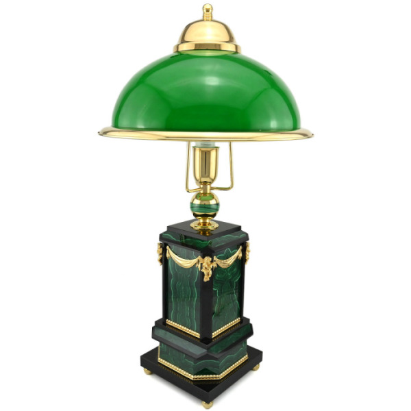Лампа настольная "Премьер" из малахитаЛампа настольная "Премьер" из малахитаИзделия изготовлены из природных материалов высокого качества. Филигранная проработка деталей характеризует безупречную работу мастера.