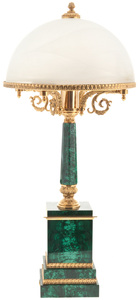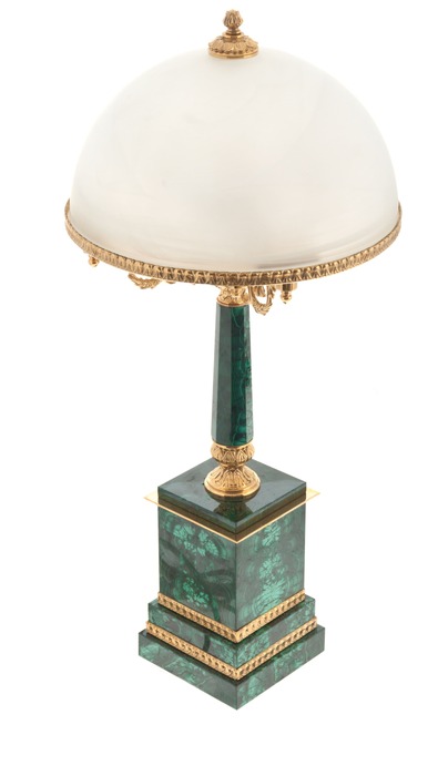 Лампа настольная "Премьер" из малахитаЛампа настольная "Премьер" из малахитаИзделия изготовлены из природных материалов высокого качества. Филигранная проработка деталей характеризует безупречную работу мастера.