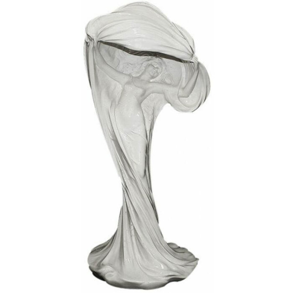 Каждая деталь произведена с ювелирной точностью и вниманием к пластике формы: тонкие руки, плавно приподнятые вверх, лицо с закрытыми глазами, полное внутреннего покоя, ткань, будто поймавшая ветер, — всё это создаёт образ, напоминающий музу начала XX века, сошедшую со страниц модернистских романов. Матовое стекло мягко рассеивает свет, превращая его в интимное, тёплое сияние — не просто функциональное освещение, а часть атмосферы, способной наполнить пространство утончённой эстетикой.