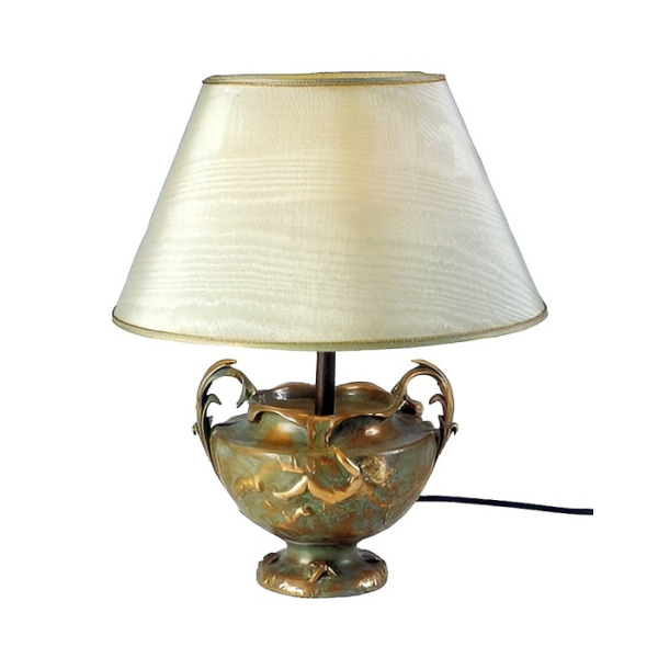 Лампа из янтаря "Тревиссо"Лампа из янтаря "Тревиссо"Настольная лампа из бронзы изготовлена в технике художественного литья, а абажур декорирован кусочками натурального янтаря. Ножка лампы выполнена в виде женской фигурки.