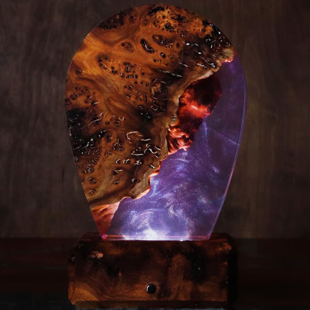 Умный ночник из дерева и эпоксидной смолы от RE Present — это гармоничное сочетание природной эстетики и современных технологий. Корпус изделия выполнен из премиальных пород дерева, дополненных прозрачной или цветной эпоксидной смолой, создающей уникальные визуальные эффекты. Каждый ночник является уникальным произведением искусства, благодаря естественной текстуре древесины и игре света внутри смолы.
