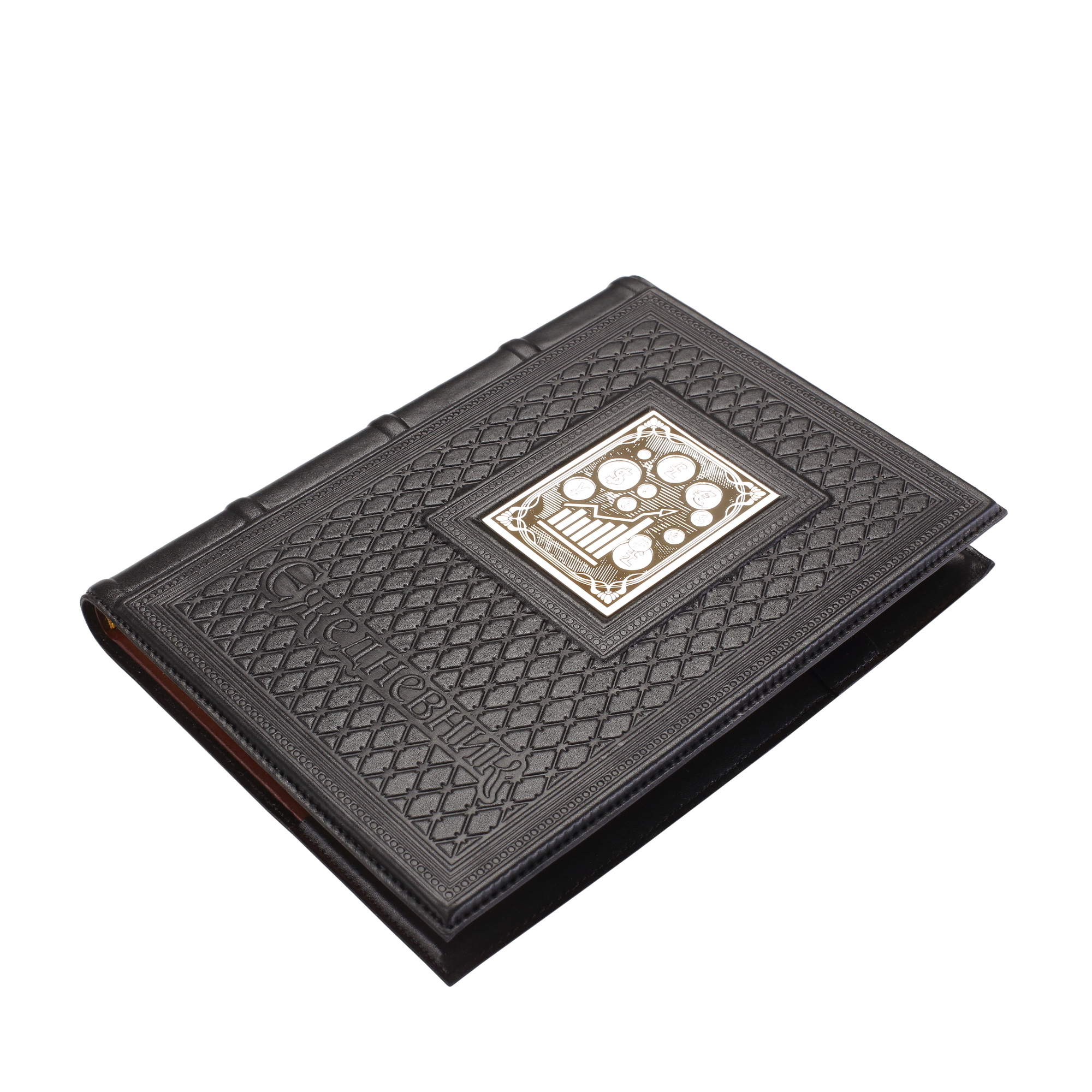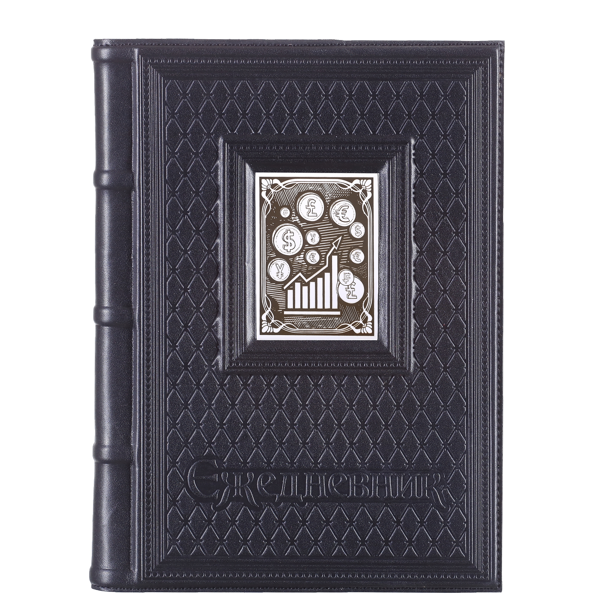 Ежедневник А5 в кожаном переплете "Брокеру-5" с накладкой покрытой никелем
