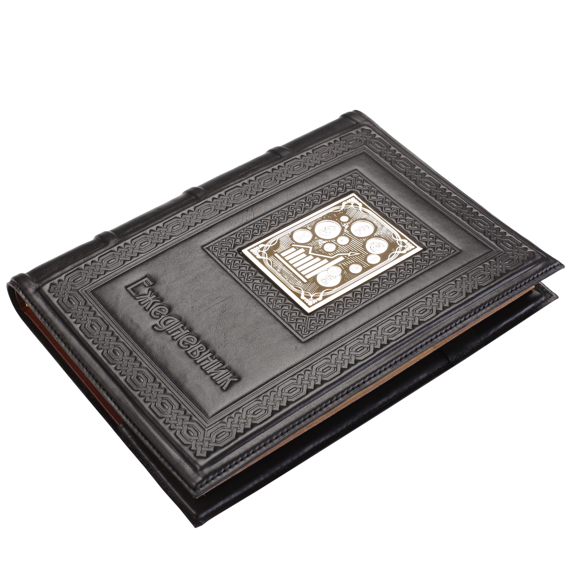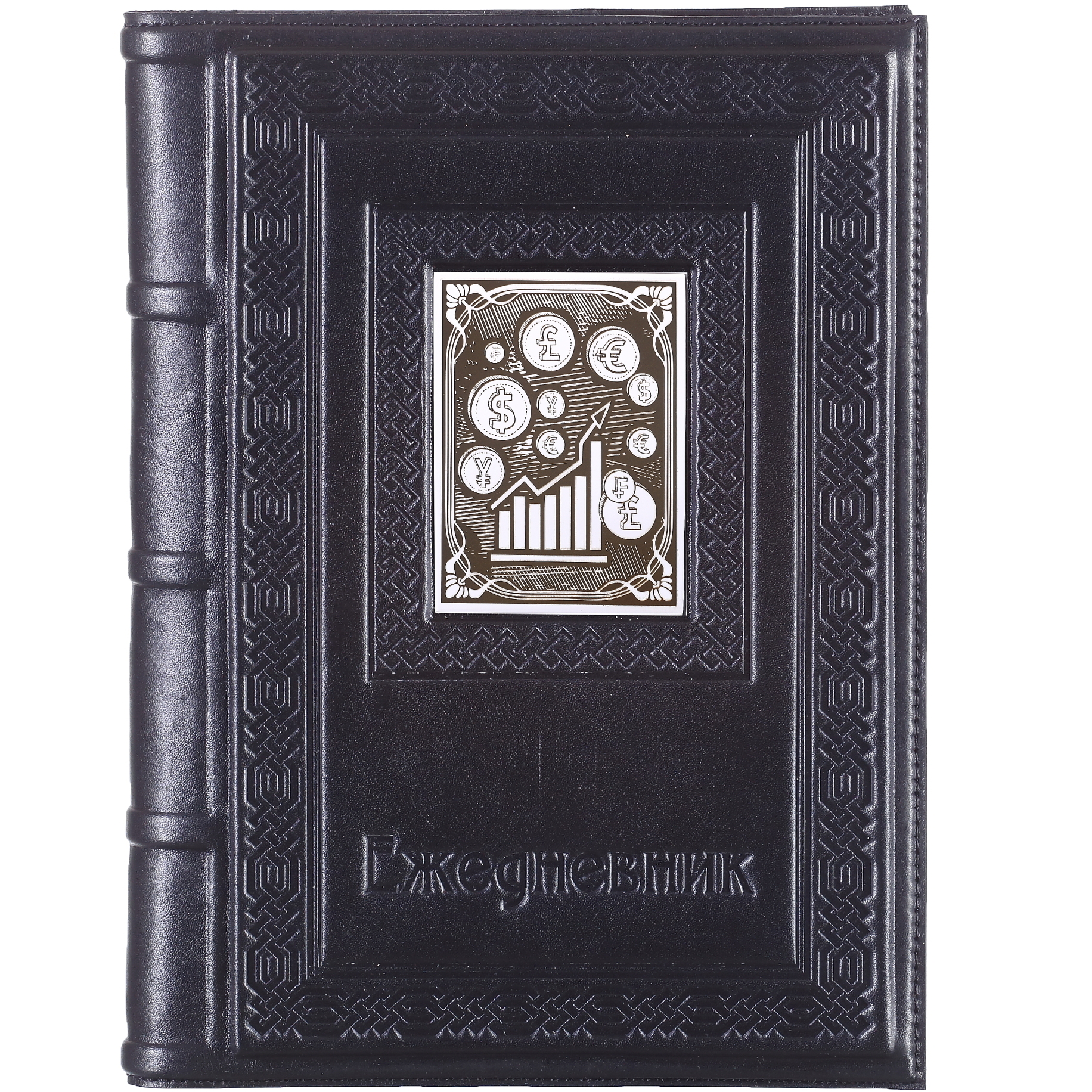 Ежедневник А5 в кожаном переплете "Брокеру-6" с накладкой покрытой никелем