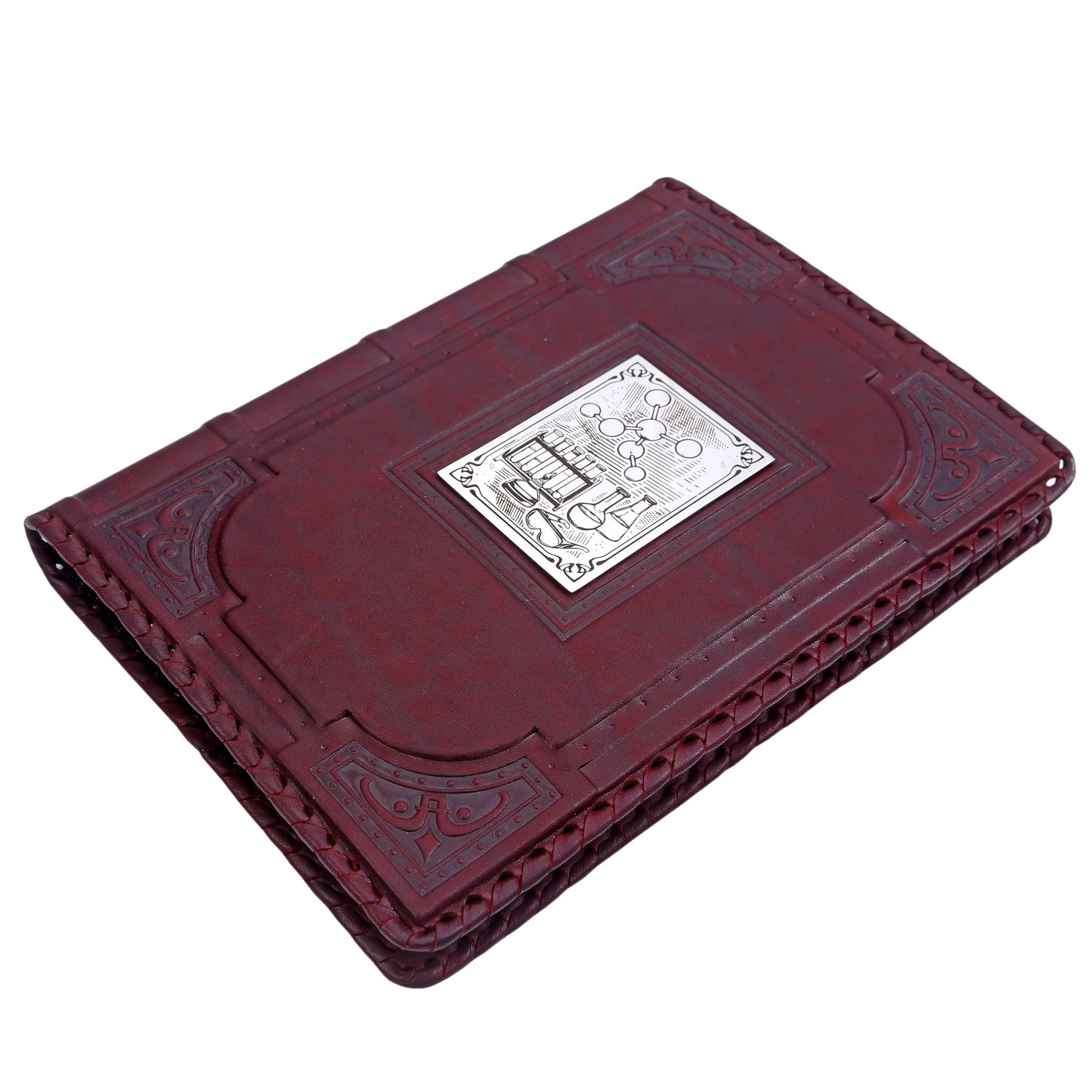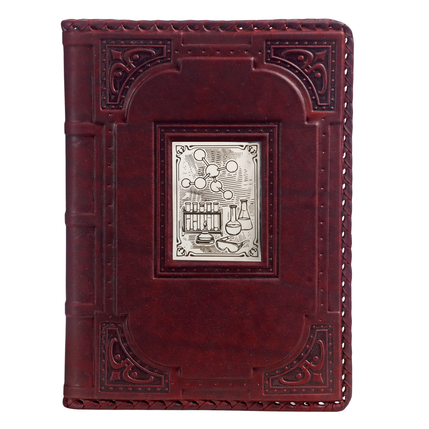 Ежедневник А5 в кожаном переплете «Химику-1» с накладкой покрытой никелем
