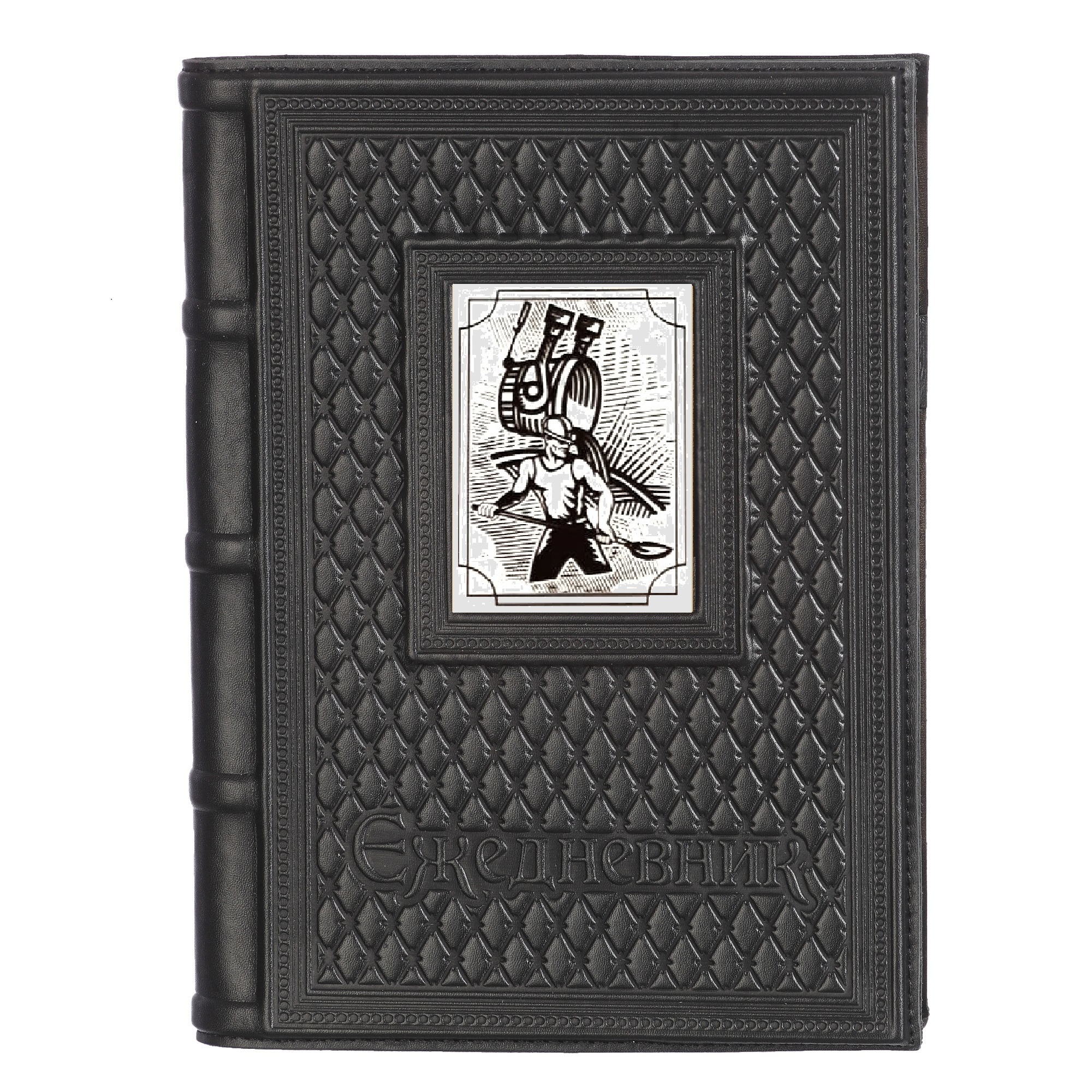 Ежедневник А5 в кожаном переплете "Металлургу-2" с накладкой покрытой никелем