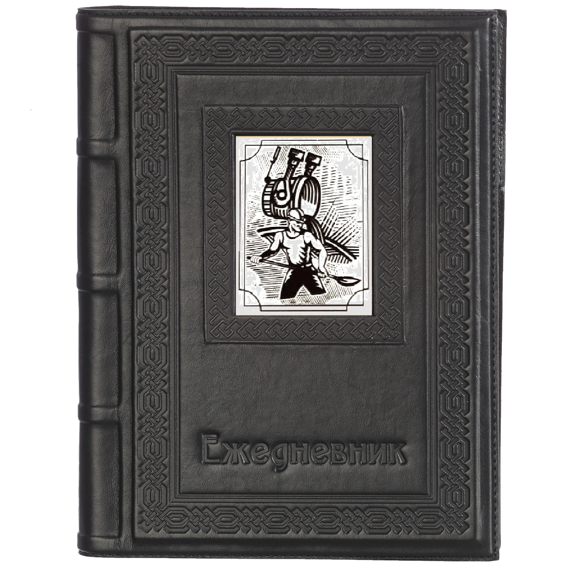 Ежедневник А5 в кожаном переплете "Металлургу-3" с накладкой покрытой никелем