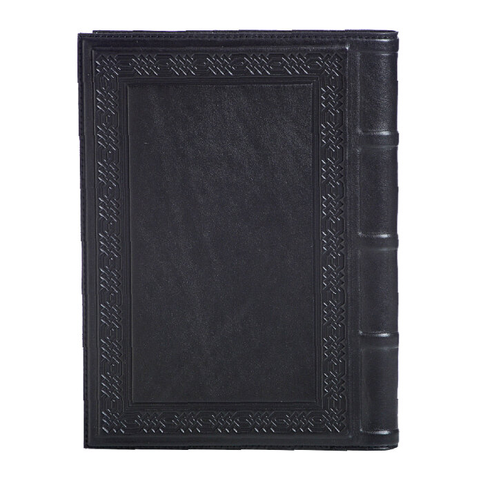 Оформление: кожаная оплетка по периметру изделия, художественное тиснение, стальная накладка.