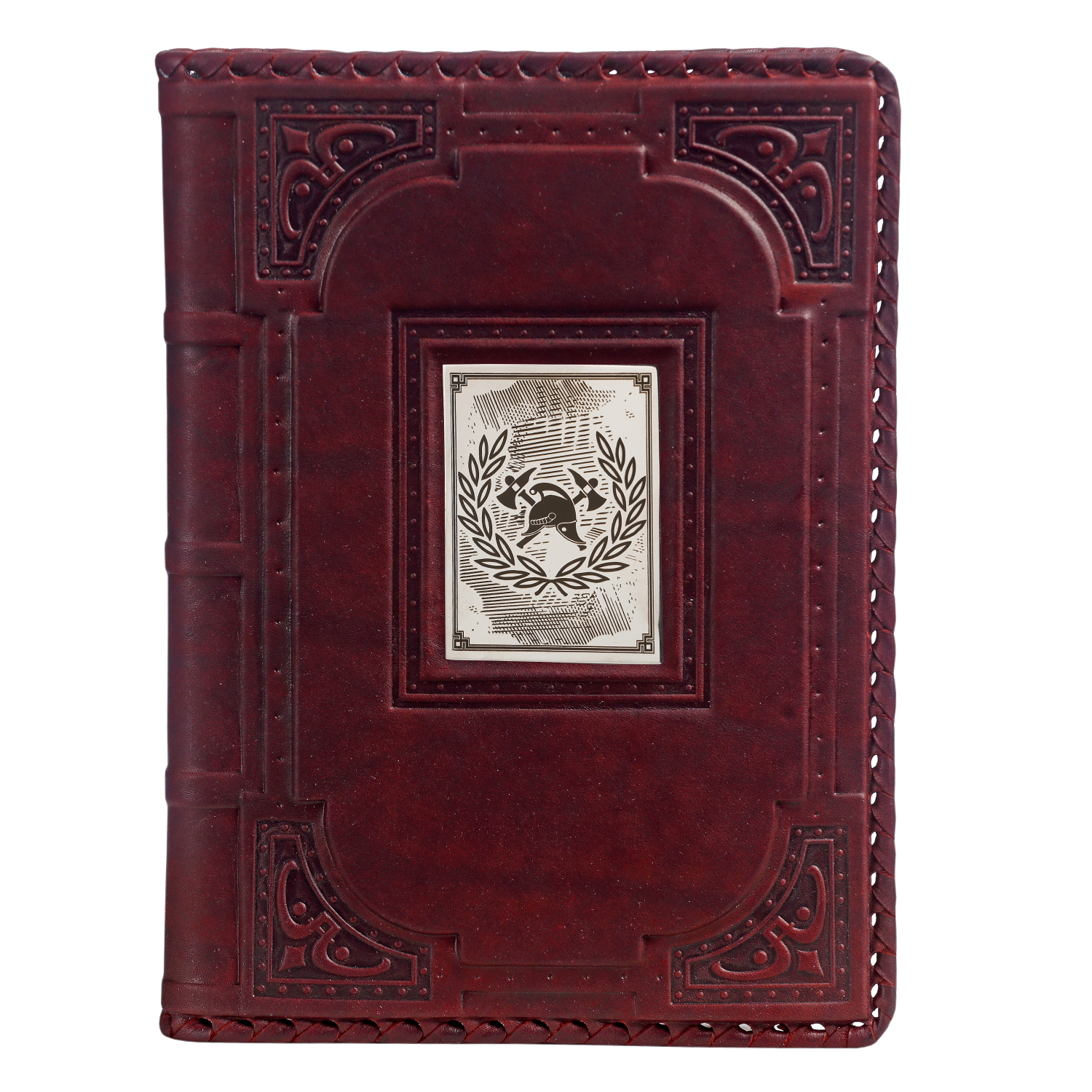 Ежедневник А5 в кожаном переплете "Пожарному-1" с накладкой покрытой никелем