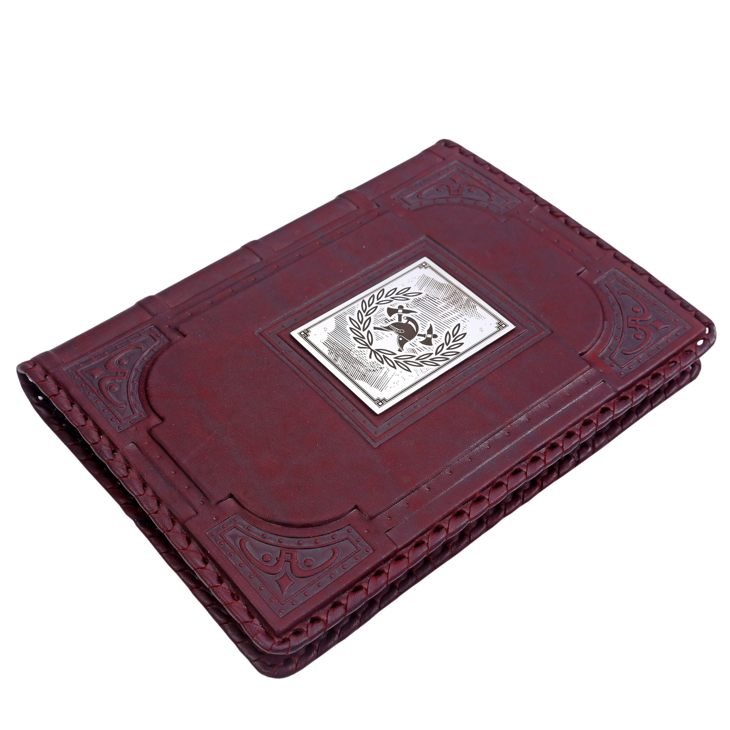 Оформление:кожаная оплетка по периметру изделия, латунная накладка, художественное тиснение.