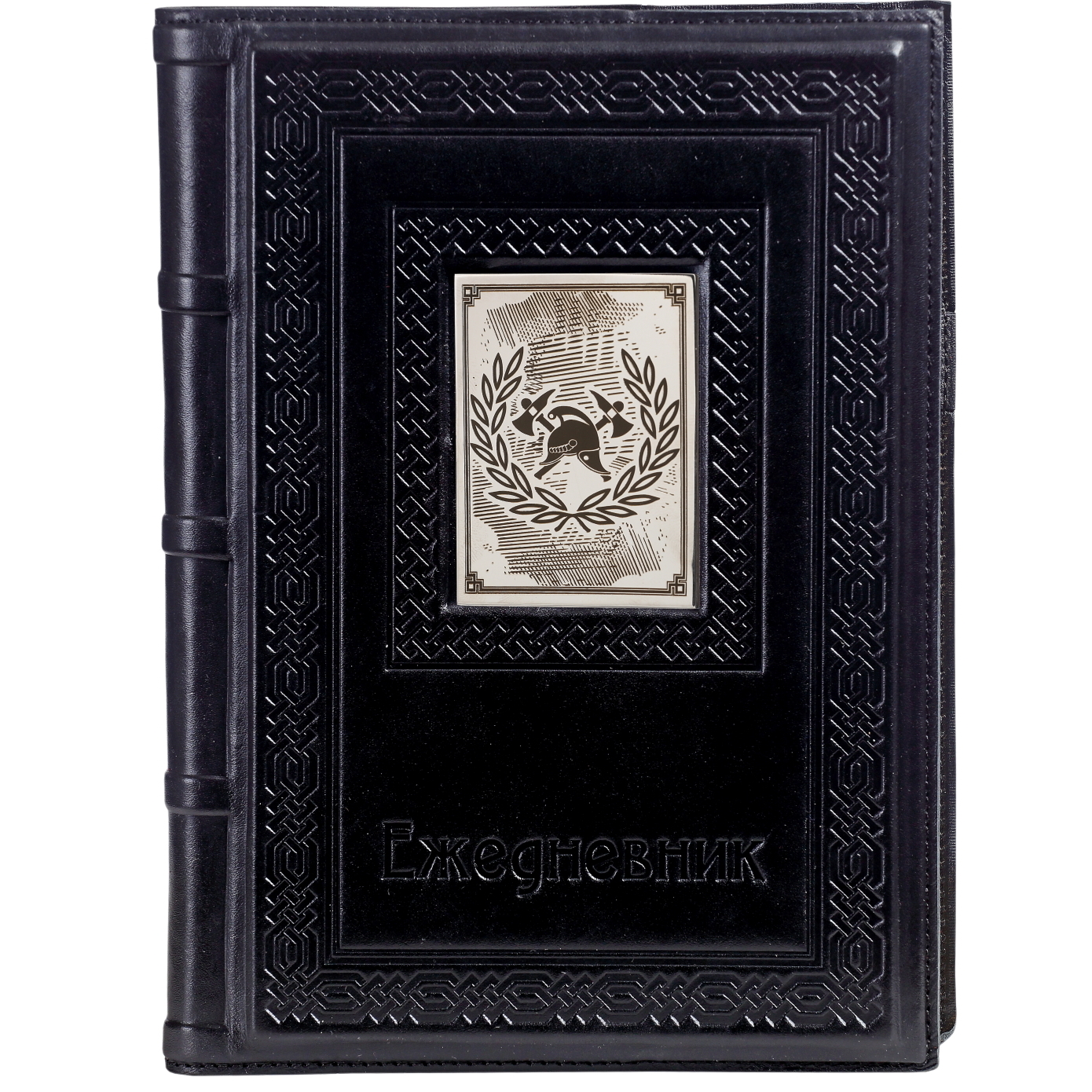 Ежедневник А5 в кожаном переплете "Пожарному-3" с накладкой покрытой никелем