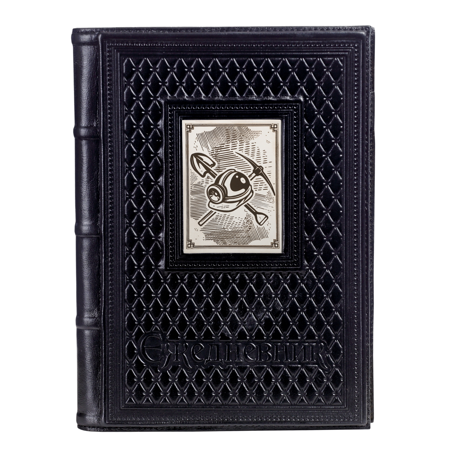 Ежедневник А5 в кожаном переплете "Шахтеру-2" с накладкой покрытой никелем