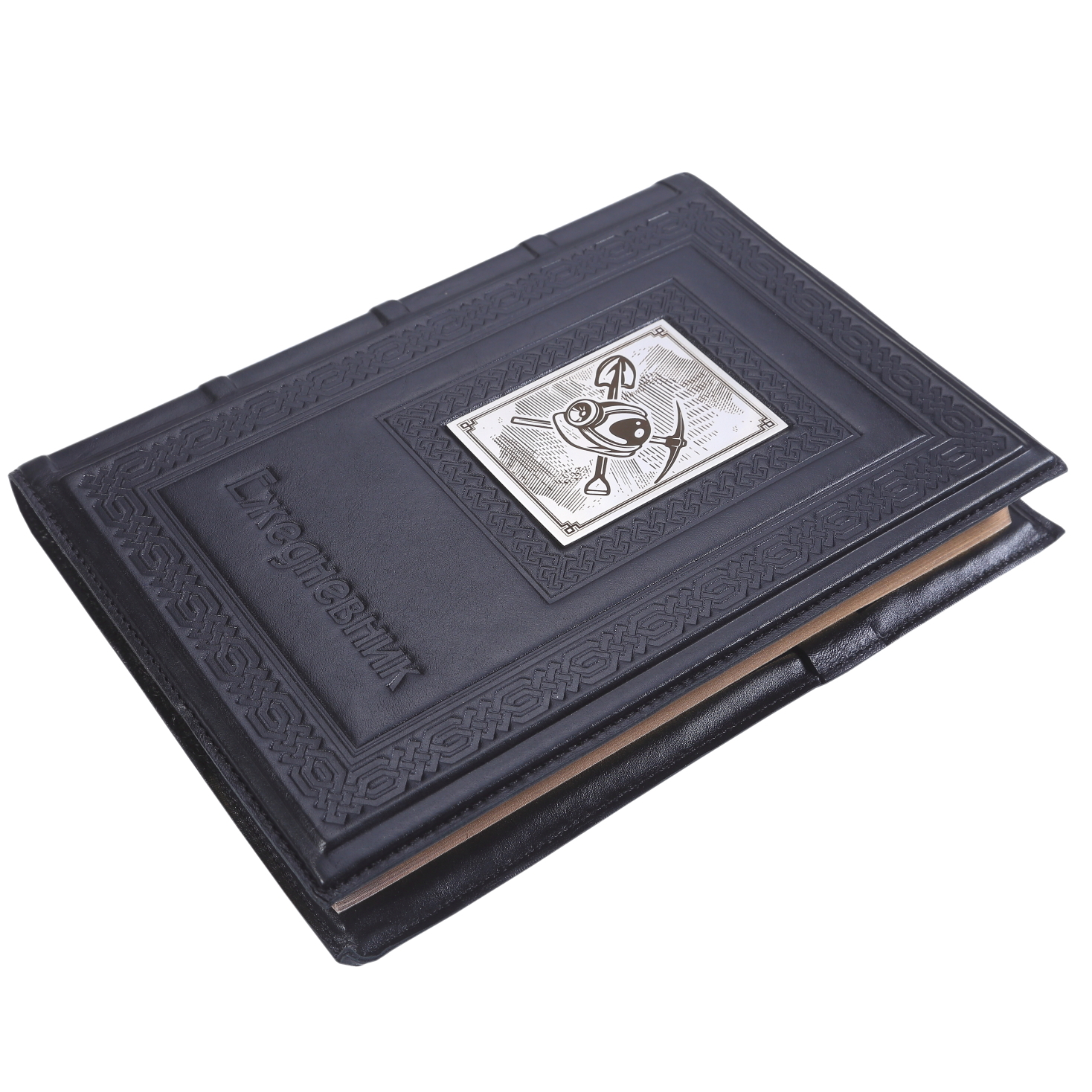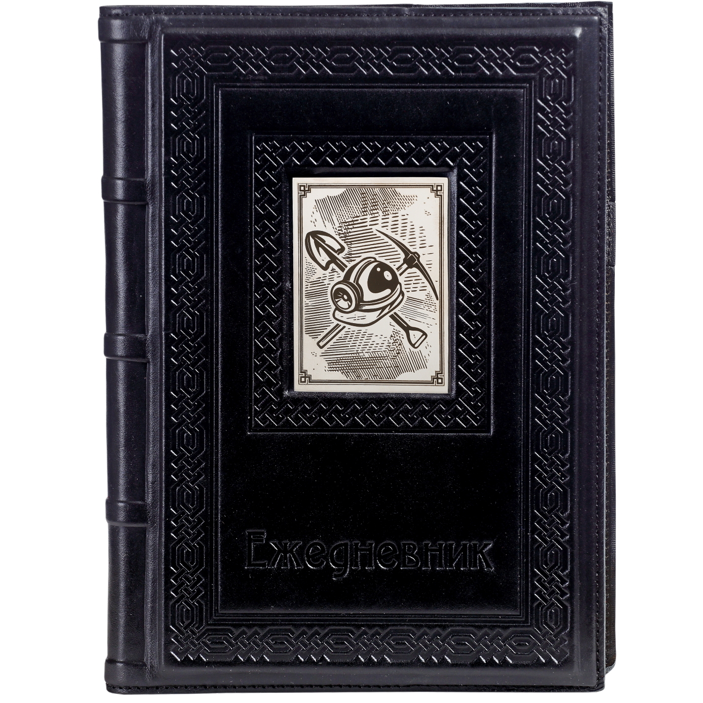 Ежедневник А5 в кожаном переплете "Шахтеру-3" с накладкой покрытой никелем