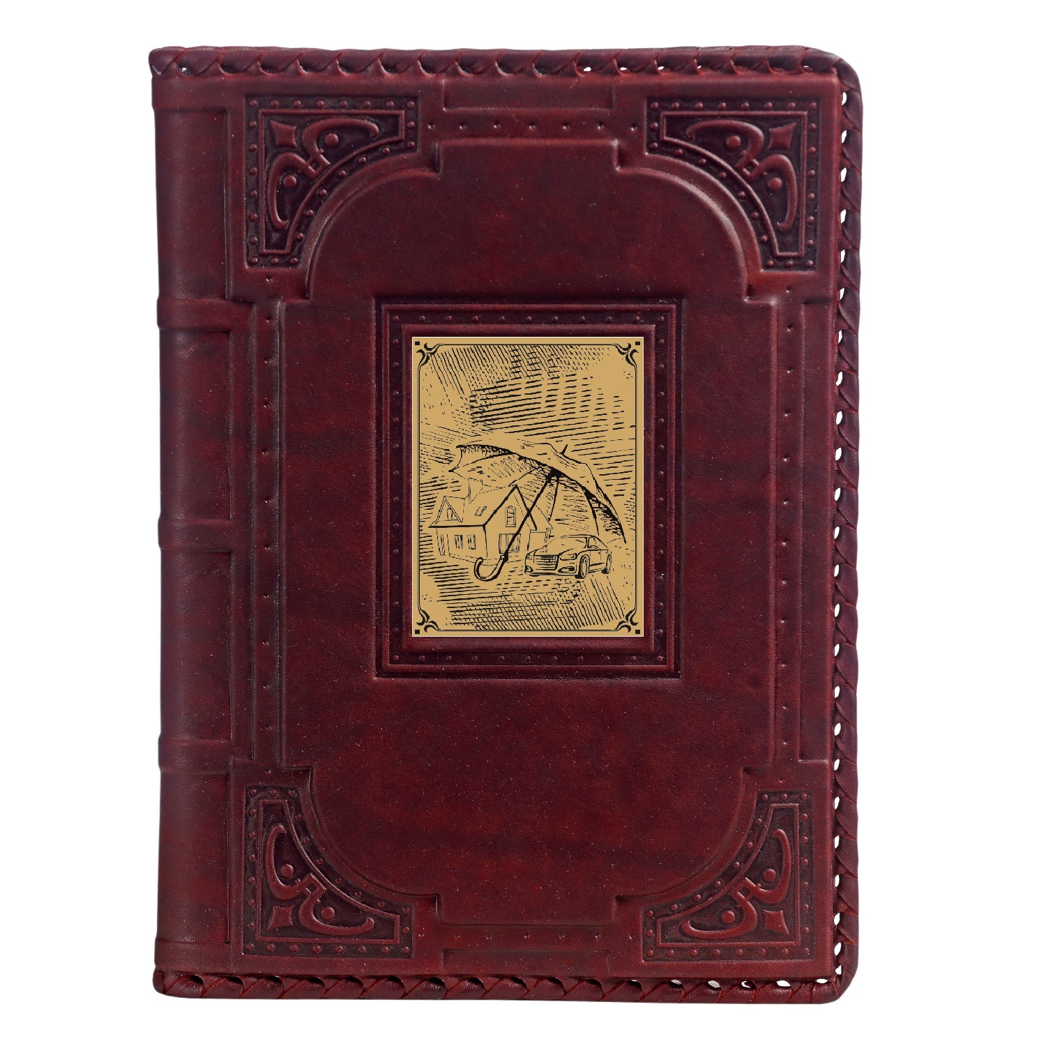 Оформление: кожаная оплетка по периметру изделия, художественное тиснение, стальная накладка.
