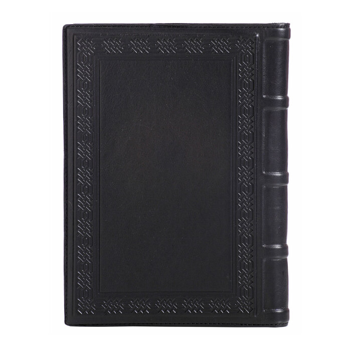 Оформление: кожаная оплетка по периметру изделия, художественное тиснение, стальная накладка.