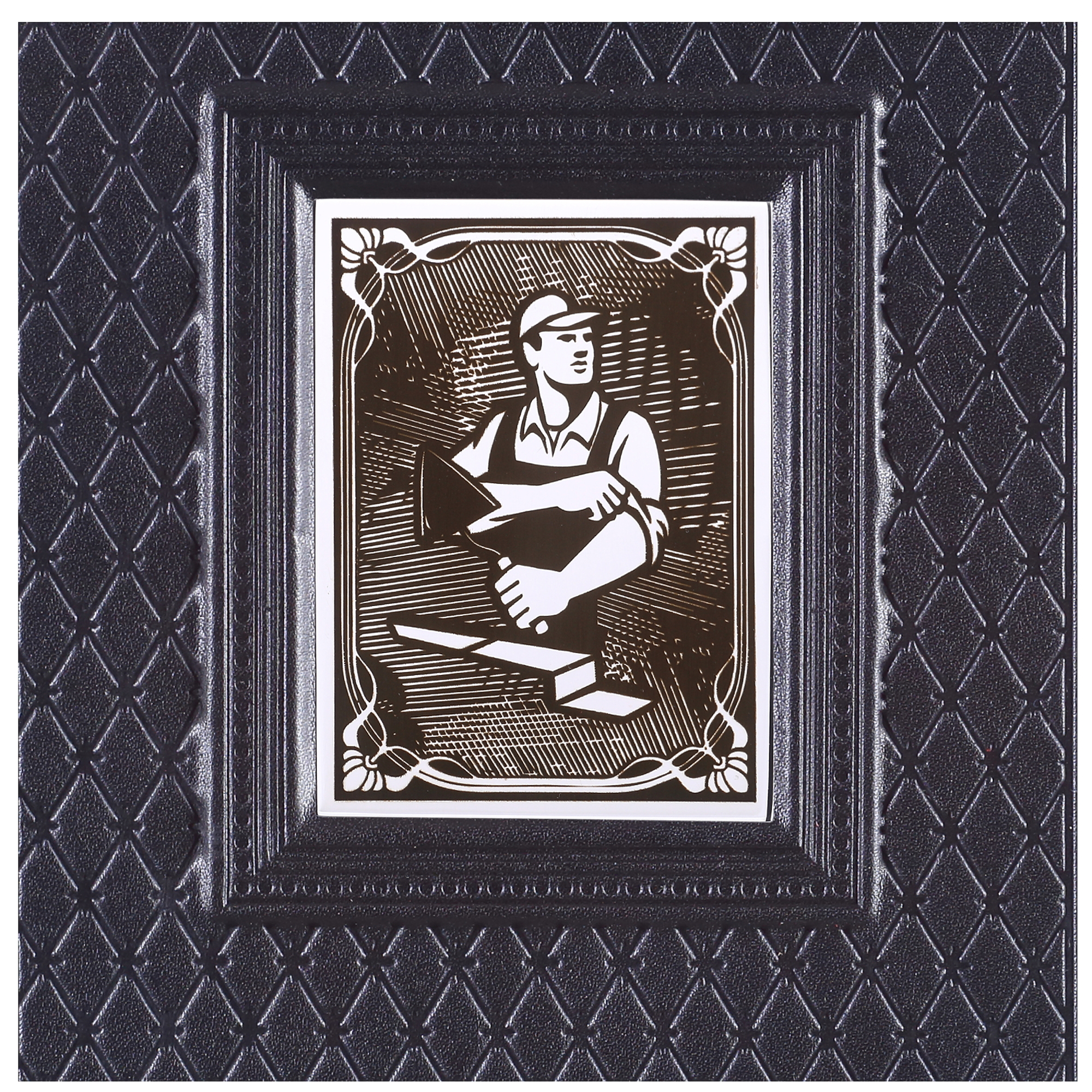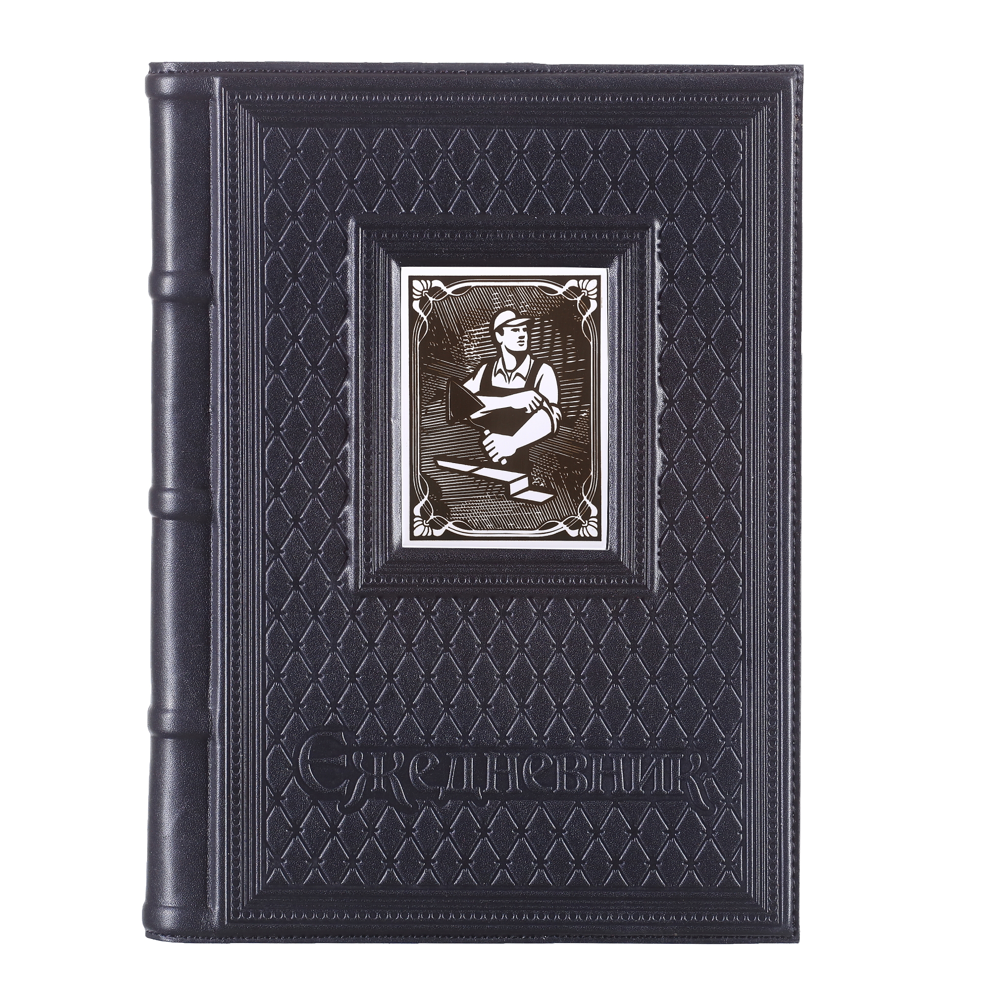 Ежедневник А5 в кожаном переплете "Строителю-5" с накладкой покрытой никелем