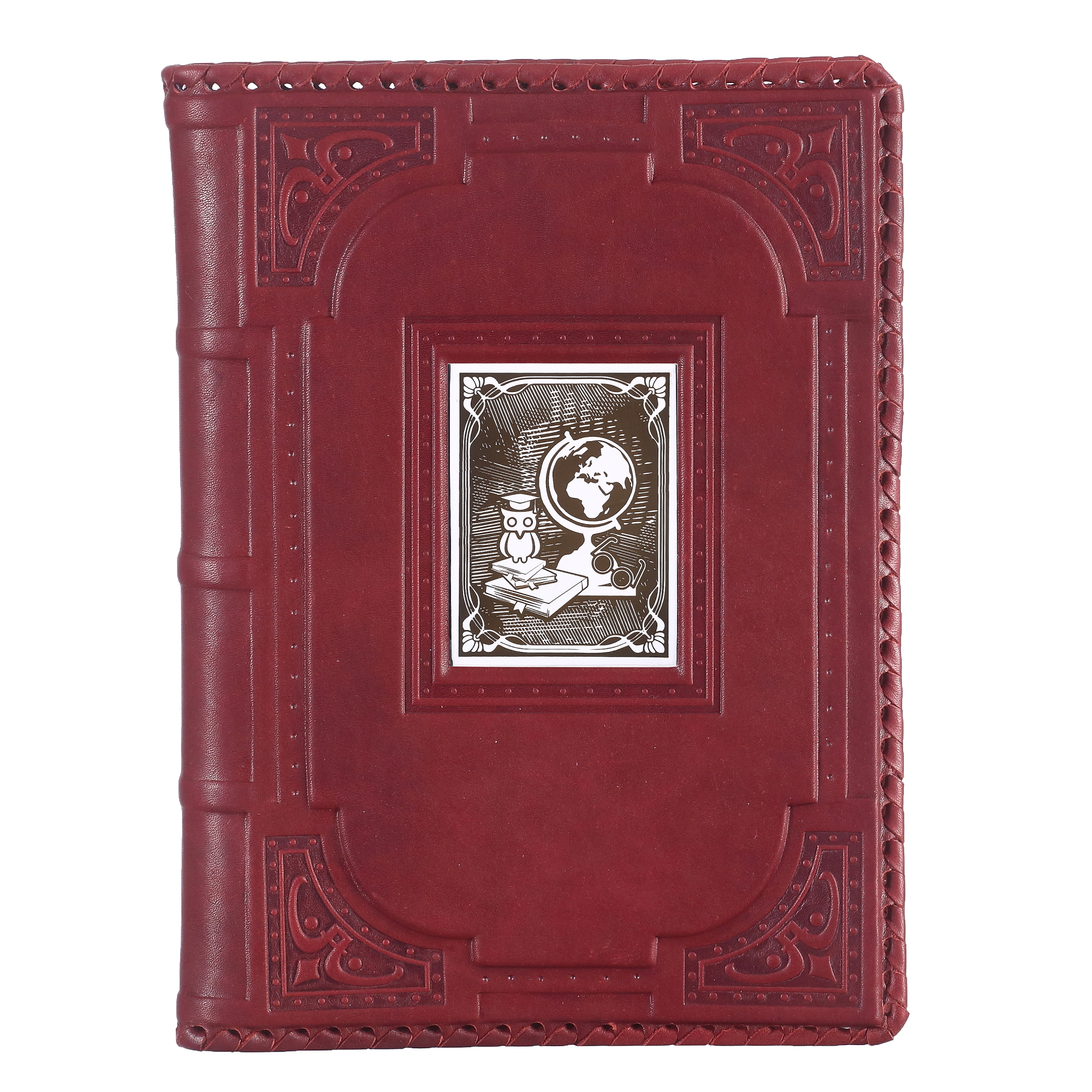 Ежедневник А5 в кожаном переплете "Учителю-4" с накладкой покрытой никелем