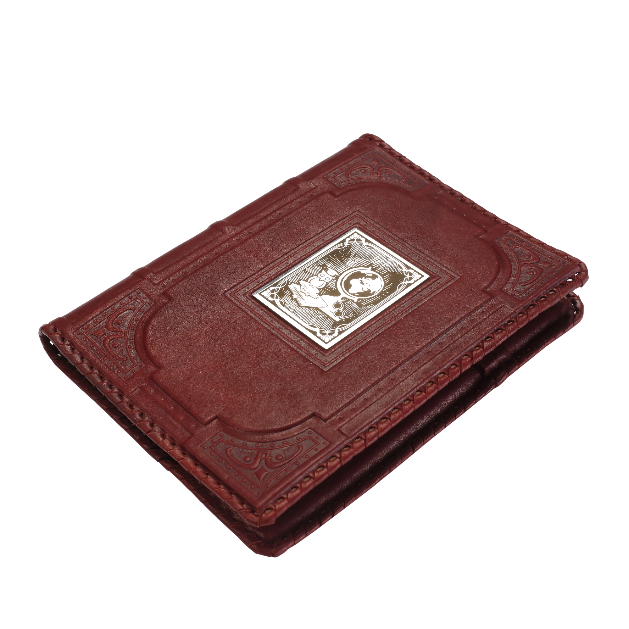Оформление:кожаная оплетка по периметру изделия, латунная накладка, художественное тиснение.