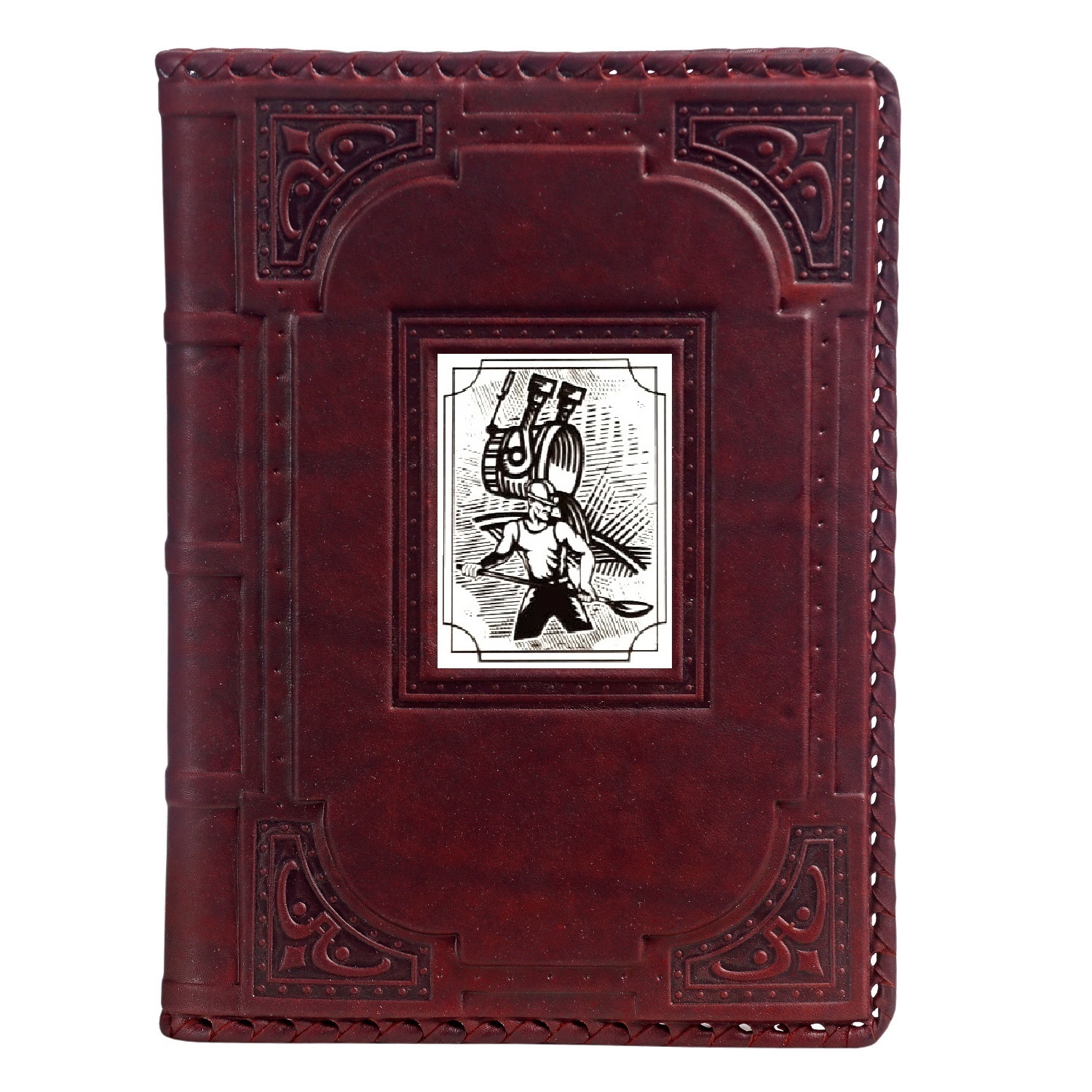 Оформление:кожаная оплетка по периметру изделия, латунная накладка, художественное тиснение.