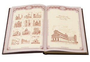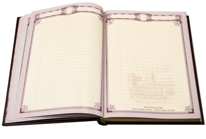 Стандартный ежедневник использует каждый современный человек, внимательно относящийся к организации своего рабочего процесса и планированию рабочего времени. Дизайнерский органайзер в обложке из натуральной кожи выгодно подчеркнет статус его владельца. Изделие украшено латунной накладкой с гравюрой, покрытой золотом 999 пробы. Торцы сменного блока тонированы золотом. Обложка изготовлена из телячьей кожи натурального дубления. По углам выполнено художественное тиснение. Периметр обложки прочно скреплен вручную методом оплетки. Блок для записей не датированный, сшитый из дизайнерской бумаги с изображениями памятников мировой архитектуры, имеющими описания на трех языках. В качестве закладки используется ленточка, прикрепленная к корешку сменного блока. Эксклюзивный ежедневник ручной работы может быть оригинальным подарком тому, кто предпочитает качество и стиль.