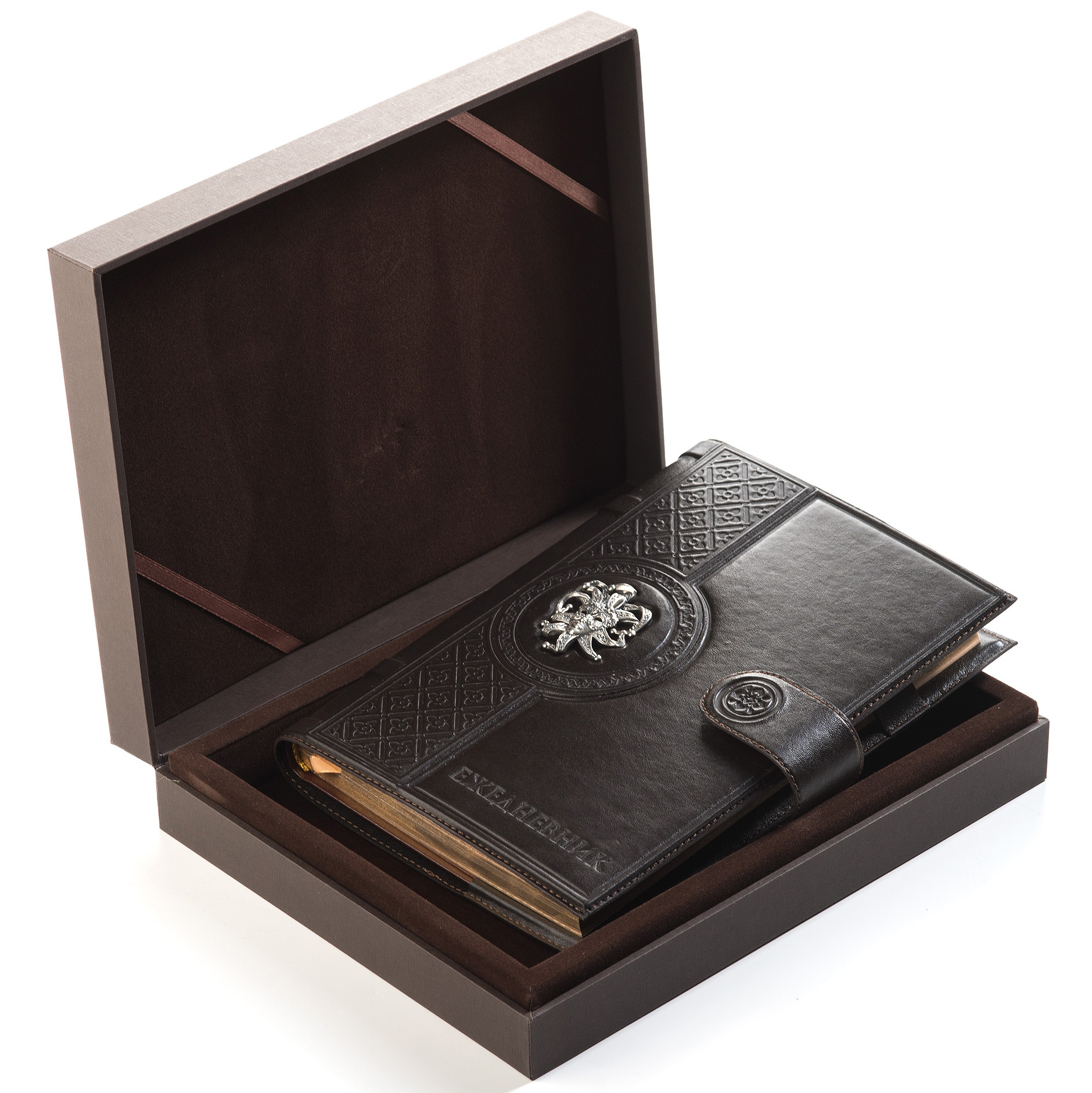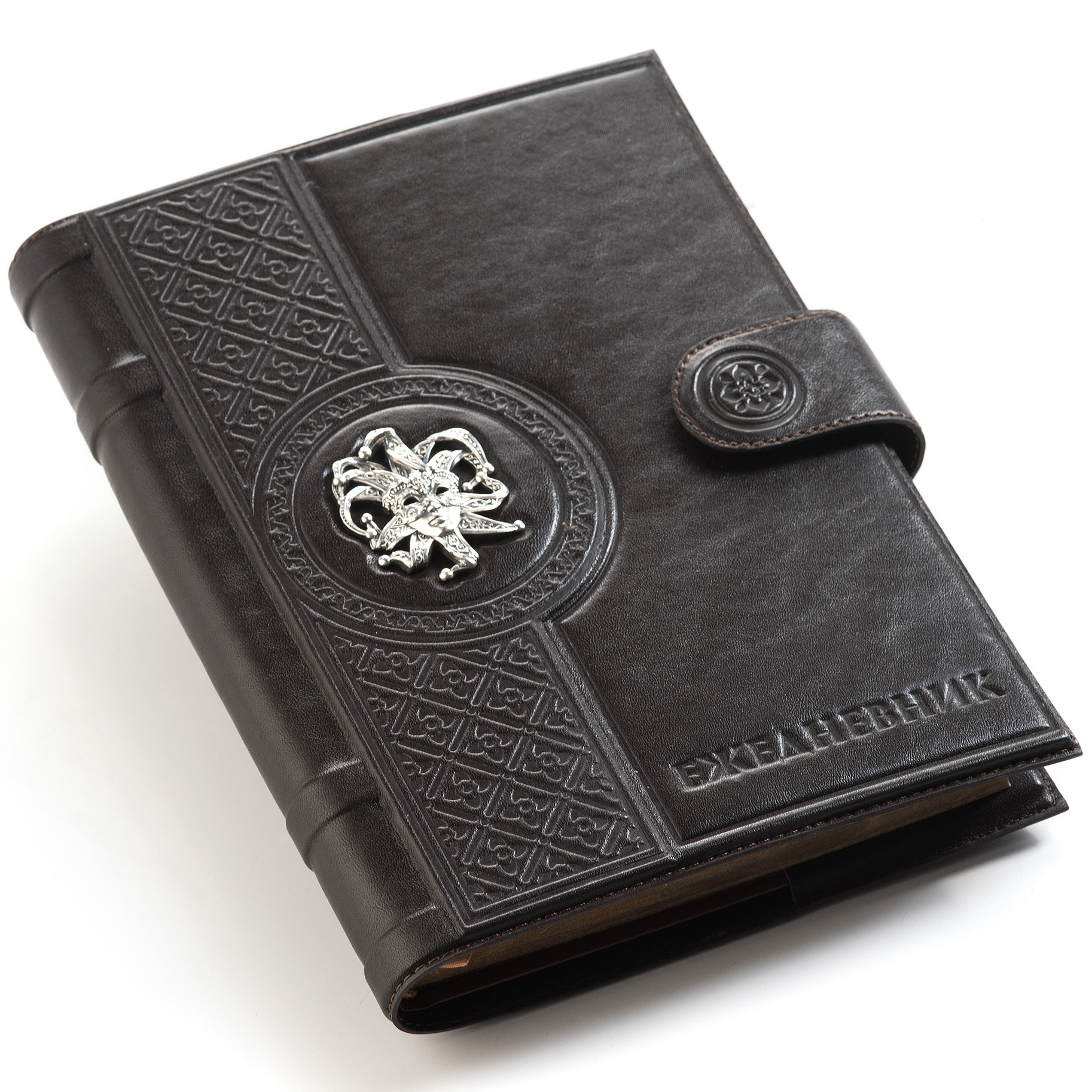 Ежедневник из телячьей кожи "Маска" с серебряной плакеткой