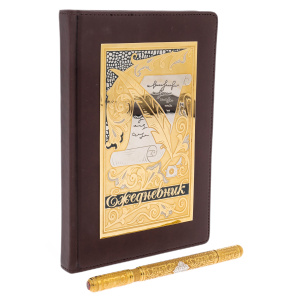 Внутренний блок — съемный. Блокнот может комплектоваться серебряной ручкой, для которой в обложку вшита петля.