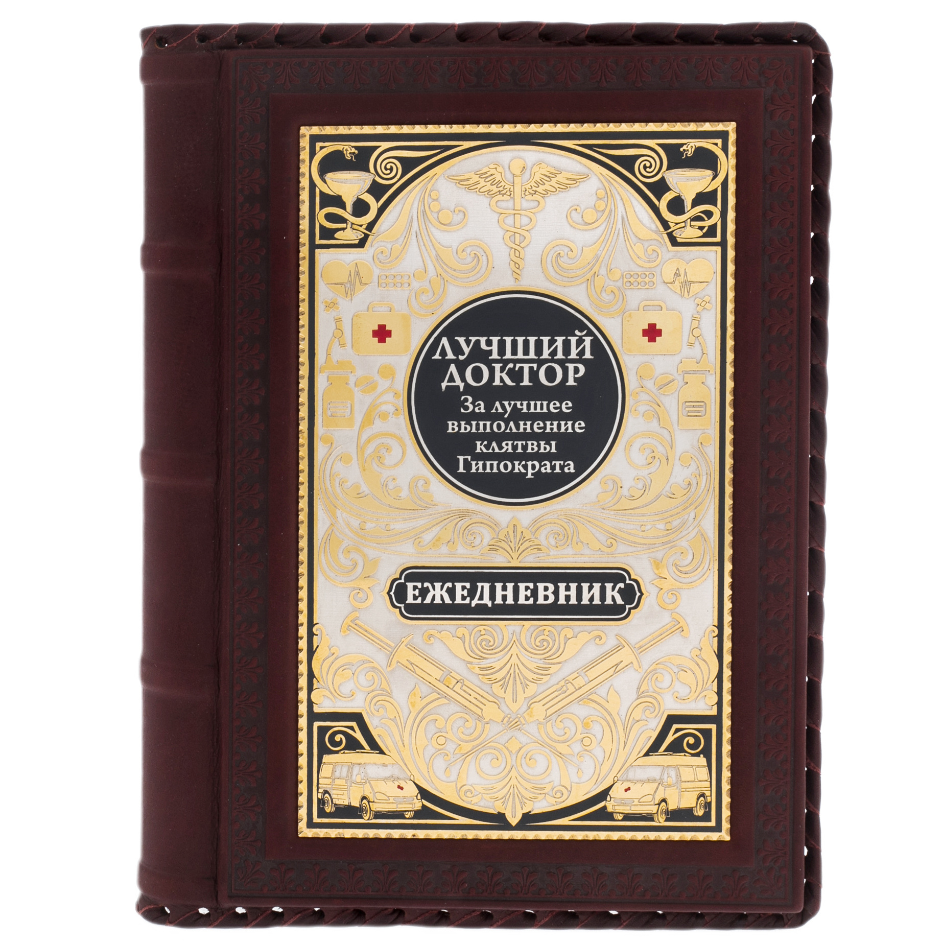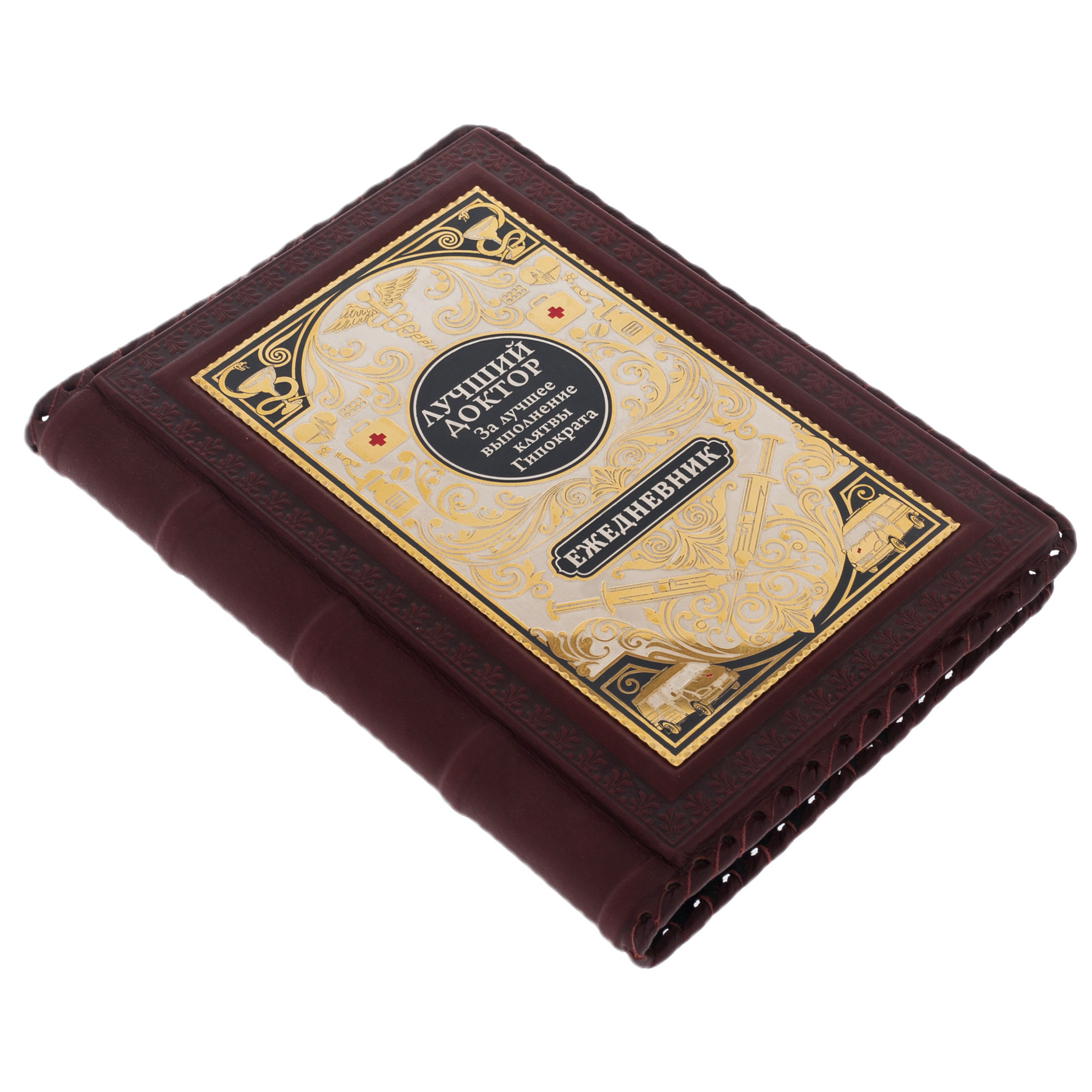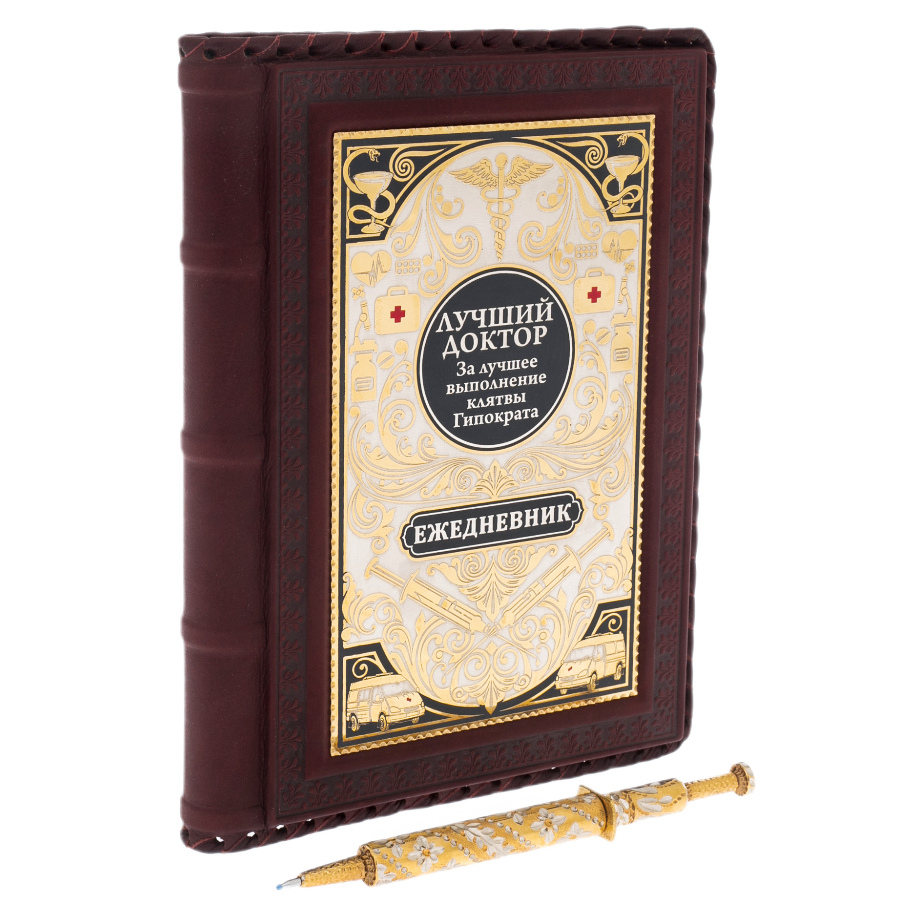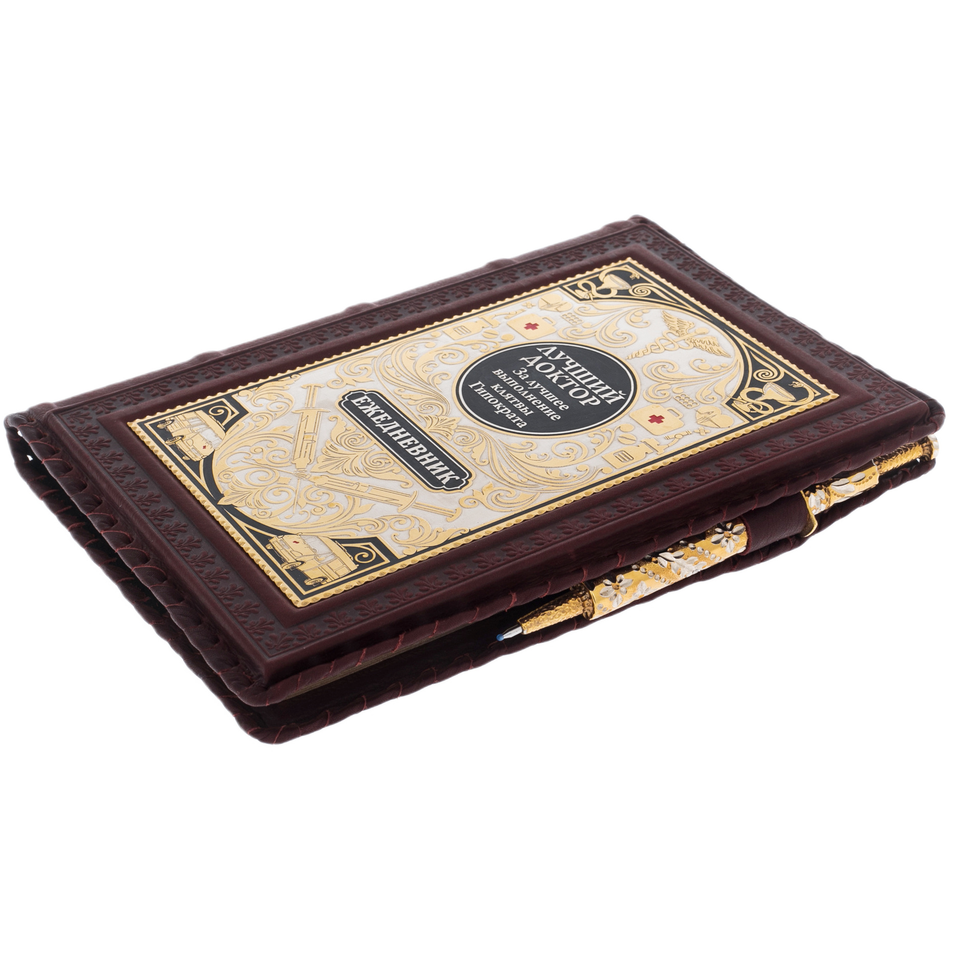 В центре — золотой медальон с гордыми словами "Лучший доктор", окруженный символами, которые передают всю значимость профессии. Этот ежедневник — не просто рабочий инструмент, а предмет, подчеркивающий исключительность и преданность своему делу, каждый его элемент словно шепчет о величии выбранного пути.