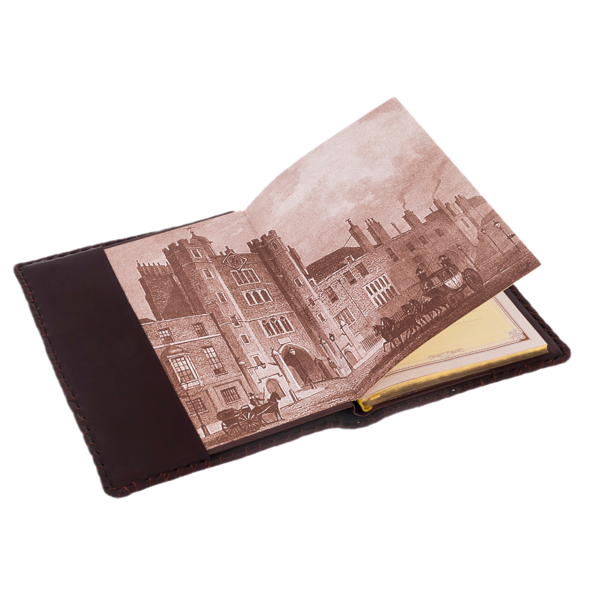 Материалы:кожа, бумага, латунь, никель, эмали.