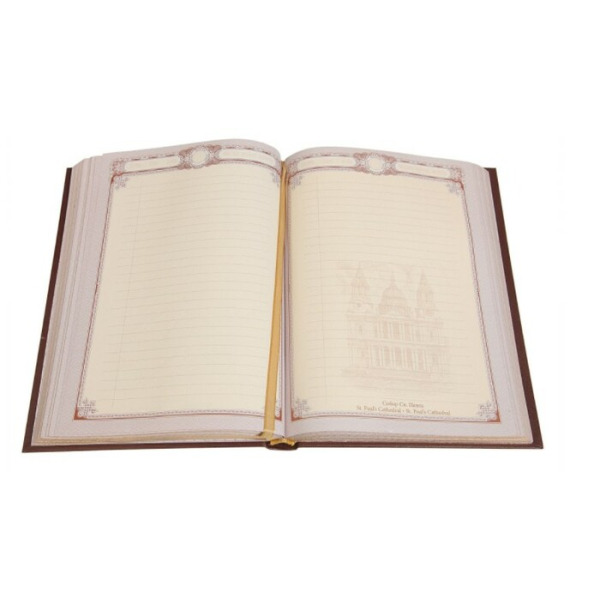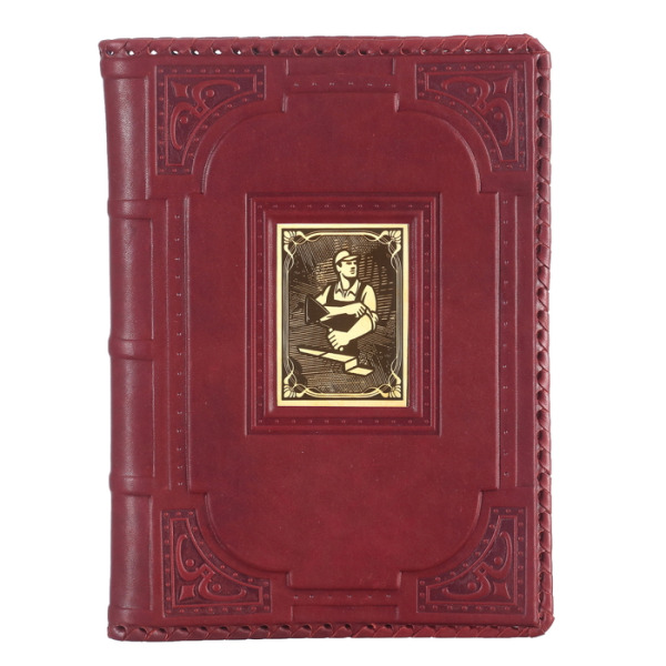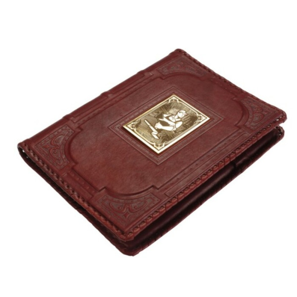 Стандартный ежедневник использует каждый современный человек, внимательно относящийся к организации своего рабочего процесса и планированию рабочего времени. Дизайнерский органайзер в обложке из натуральной кожи выгодно подчеркнет статус его владельца. Изделие украшено латунной накладкой с гравюрой, покрытой золотом 999 пробы. Торцы сменного блока тонированы золотом. Обложка изготовлена из телячьей кожи натурального дубления. По углам выполнено художественное тиснение. Периметр обложки прочно скреплен вручную методом оплетки. Блок для записей не датированный, сшитый из дизайнерской бумаги с изображениями памятников мировой архитектуры, имеющими описания на трех языках. В качестве закладки используется ленточка, прикрепленная к корешку сменного блока. Эксклюзивный ежедневник ручной работы может быть оригинальным подарком тому, кто предпочитает качество и стиль.