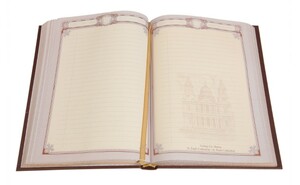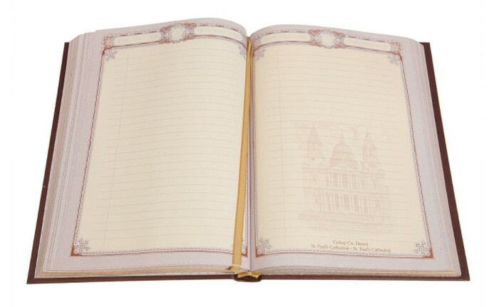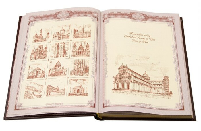 Стандартный ежедневник использует каждый современный человек, внимательно относящийся к организации своего рабочего процесса и планированию рабочего времени. Дизайнерский органайзер в обложке из натуральной кожи выгодно подчеркнет статус его владельца. Изделие украшено латунной накладкой с гравюрой, покрытой золотом 999 пробы. Торцы сменного блока тонированы золотом. Обложка изготовлена из телячьей кожи натурального дубления. По углам выполнено художественное тиснение. Периметр обложки прочно скреплен вручную методом оплетки. Блок для записей не датированный, сшитый из дизайнерской бумаги с изображениями памятников мировой архитектуры, имеющими описания на трех языках. В качестве закладки используется ленточка, прикрепленная к корешку сменного блока. Эксклюзивный ежедневник ручной работы может быть оригинальным подарком тому, кто предпочитает качество и стиль.