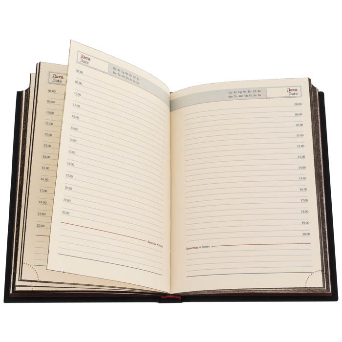 Особенности оформления ежедневника: тиснение, ручная работа, цельнокожаный переплет, позолоченный обрез; высококачественная бумага, красочные иллюстрации.