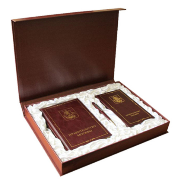 В подарочный набор входят ежедневник в кожаном переплете, а также визитница на 60 визиток.