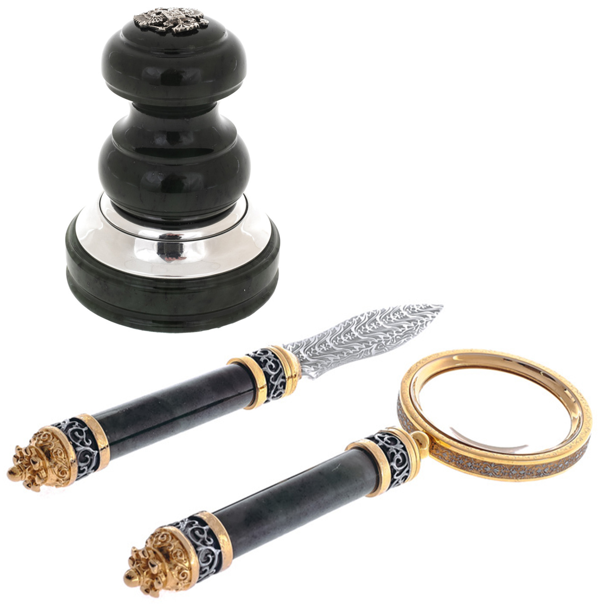Набор подарочный "Кабинетный" с печатью, ножом и лупой
