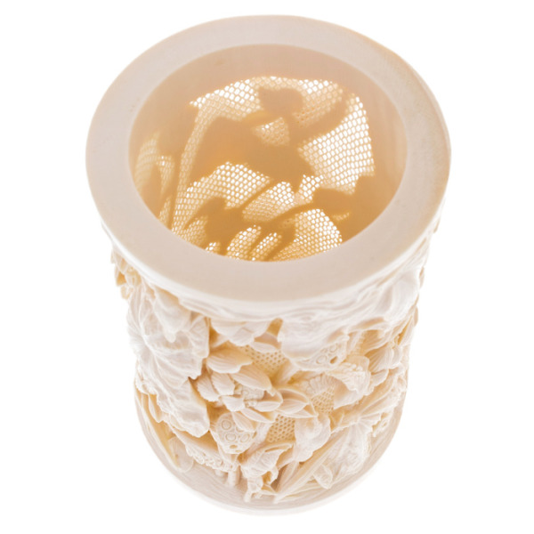 На поверхности карандашницы, словно оживая, предстают грациозные птицы, парящие среди густой листвы и цветов. Каждая деталь выполнена с ювелирной точностью, создавая впечатление живой природы, замеревшей в моменте вечности. Переплетение растительных узоров и тонко проработанных фигурок создает иллюзию оазиса, где можно найти умиротворение и покой среди повседневной суеты.