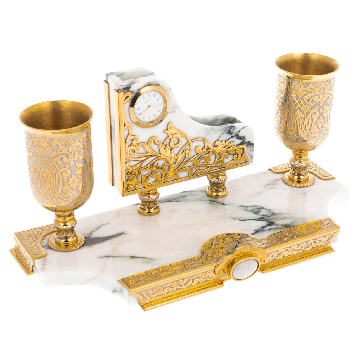 Набор настольный из белой яшмы "Имперский" Златоуст