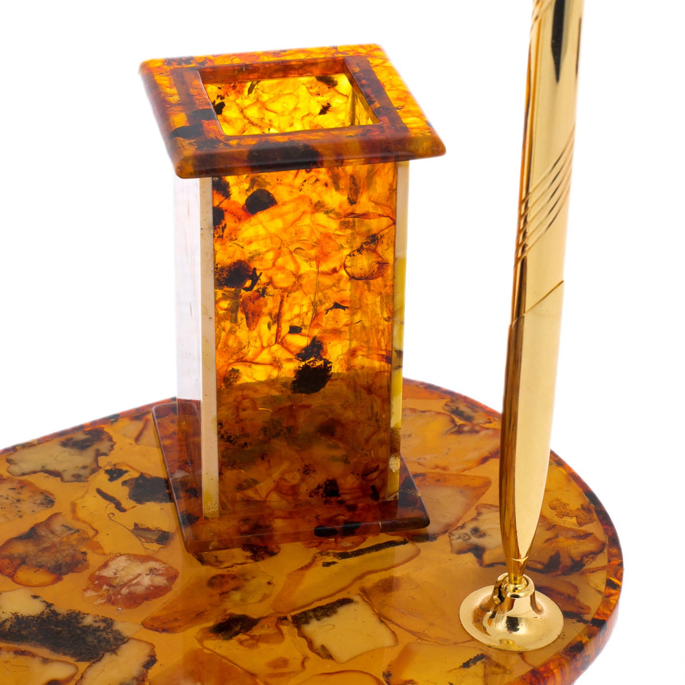 Этот настольный набор — не просто украшение рабочего пространства, а статусный символ, выражающий уверенность, дальновидность и уважение к истинным ценностям. Он идеально подойдет человеку, который ценит эстетику, знает цену настоящему искусству и всегда выбирает лучшее. В нем заключена история успеха, воплощенная в янтаре и золоте — история, которая продолжается вместе с вами.