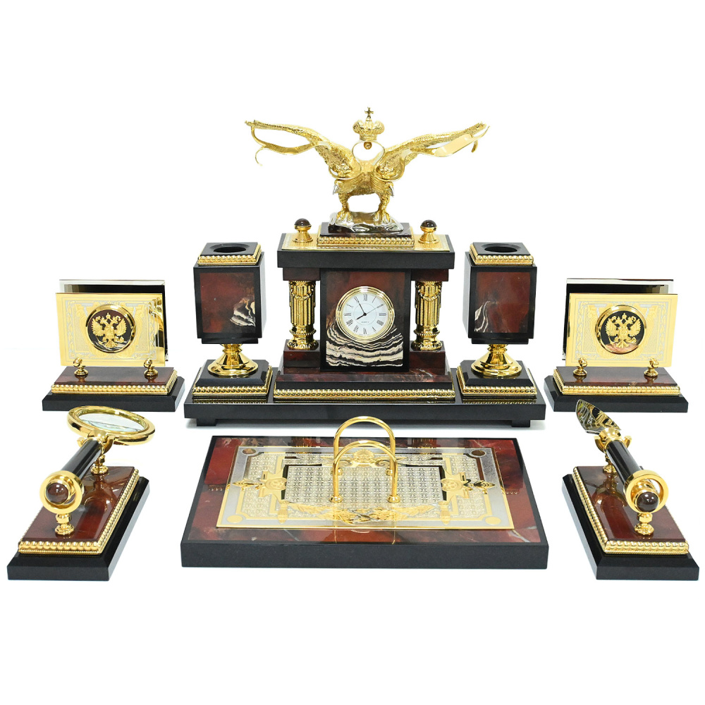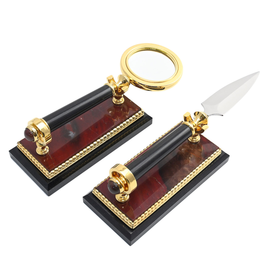 Материал: камень яшма, камень долерит, бронза, латунь.