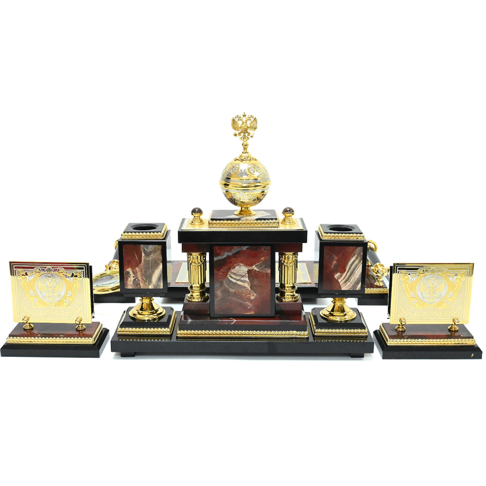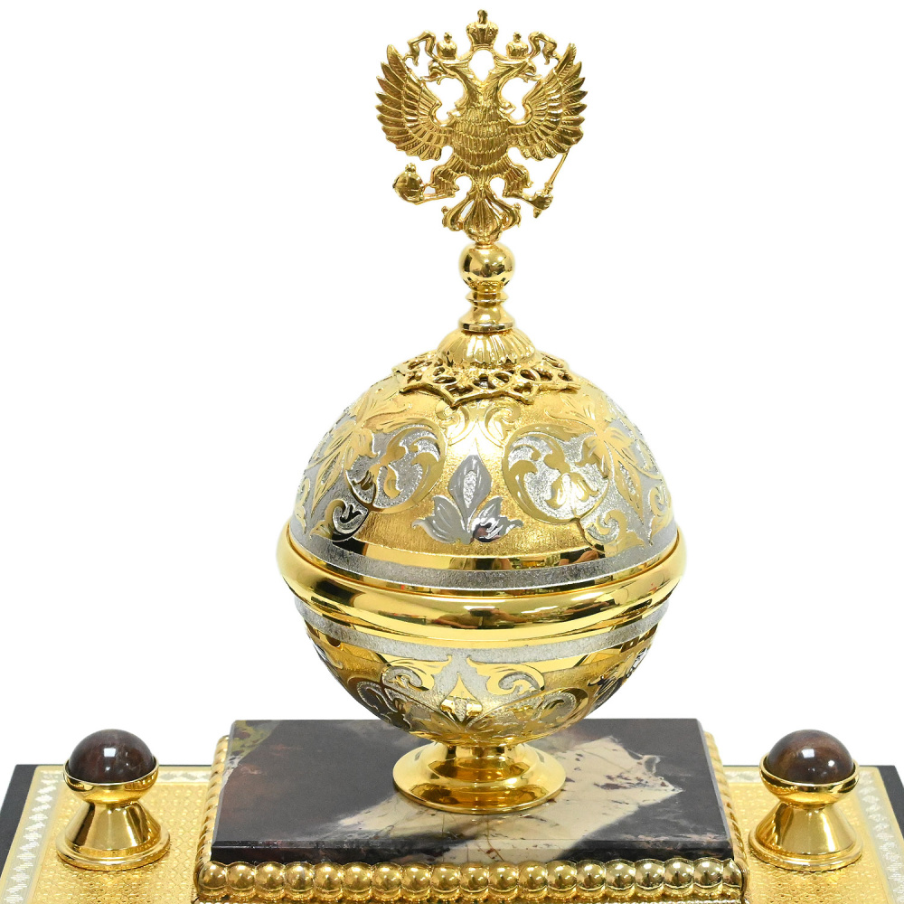 Материал: камень яшма, камень долерит, бронза, латунь.