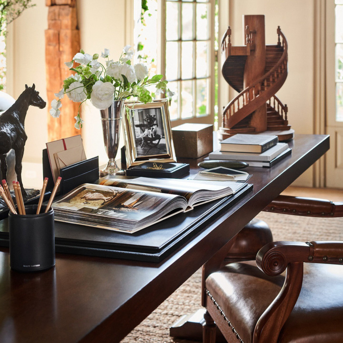 Комплектация: планшет — 53,3×36,6×0,5 см, настольный аксессуар — 16×16×3,2 см, стакан для карандашей — 8,9×8,9×11,2 см, шкатулка для письменных аксессуаров — 26,7×19,8×12 см, фоторамка — 13×18 см.